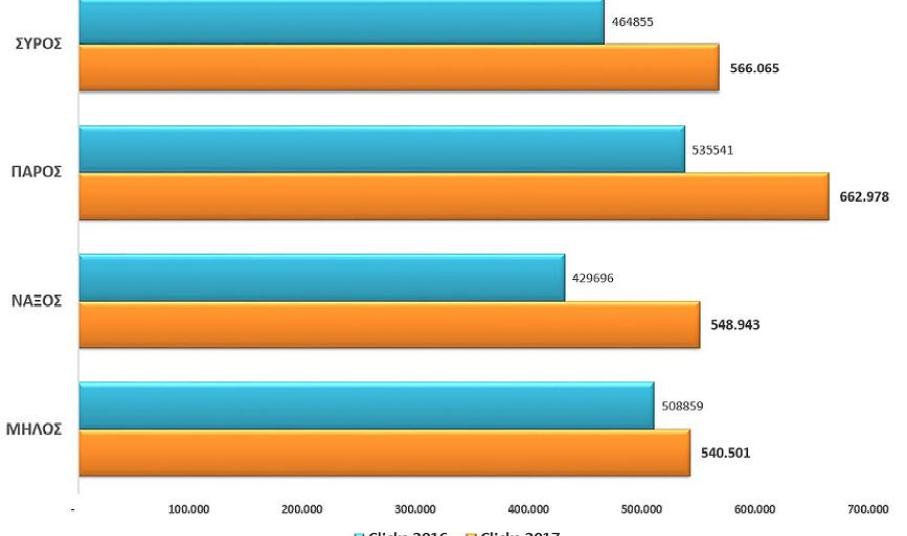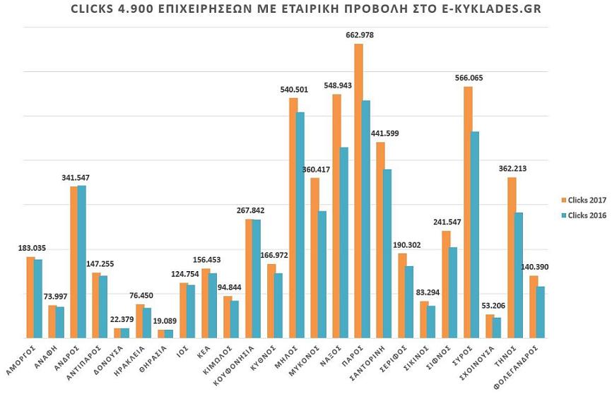 Το 2017 το e-kyklades.gr σημείωσε άνοδο 30% σε σχέση με το 2016, προσελκύοντας 640.000 επισκέπτες από 182 χώρες του κόσμου, έναντι 500.000 πέρυσι, αγγίζοντας τις 5,9 εκατομμύρια προβολές των 4.900 επιχειρήσεων που αξιοποίησαν τη δυνατότητα προβολής που τους παρέχει το Επιμελητήριο.