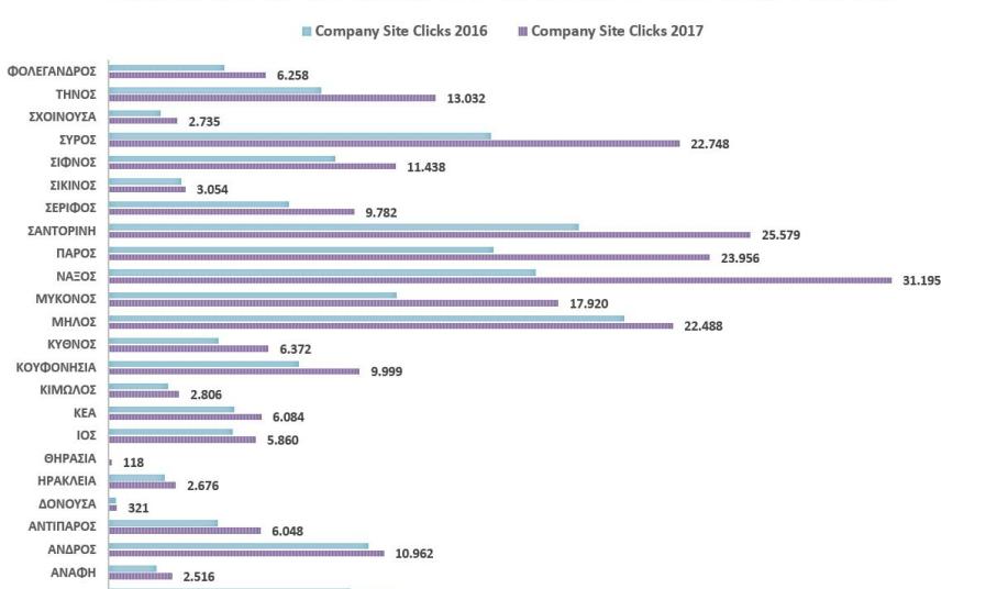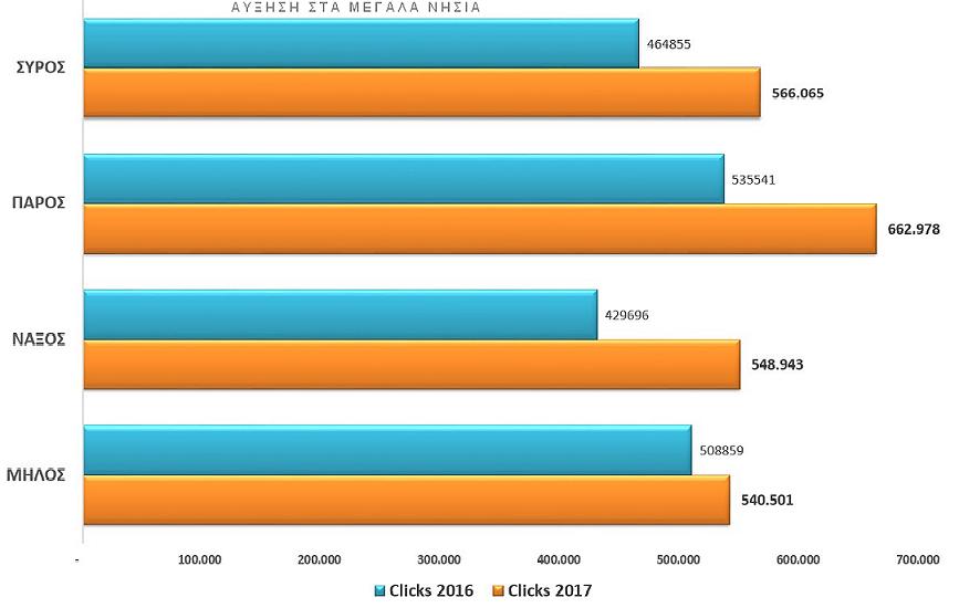 Σύμφωνα με τα καταγεγραμμένα στοιχεία, οι προβολές των 4.900 επιχειρήσεων που προβάλλονται από τα 24 νησιά, σε συνδυασμό με την ζήτηση και τον αριθμό επιχειρήσεων που προβάλλονται σε κάθε νησί, η μεγαλύτερη κίνηση και αύξηση σημειώθηκε στην τετράδα των μεγάλων νησιών: Πάρος, Σύρος, Νάξος και Μήλος.