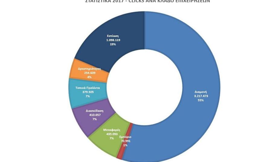 Ο αριθμός των προβολών ανά κλάδο διαμορφώθηκε ως εξής: Διαμονή - 3,2 εκατομμύρια clicks