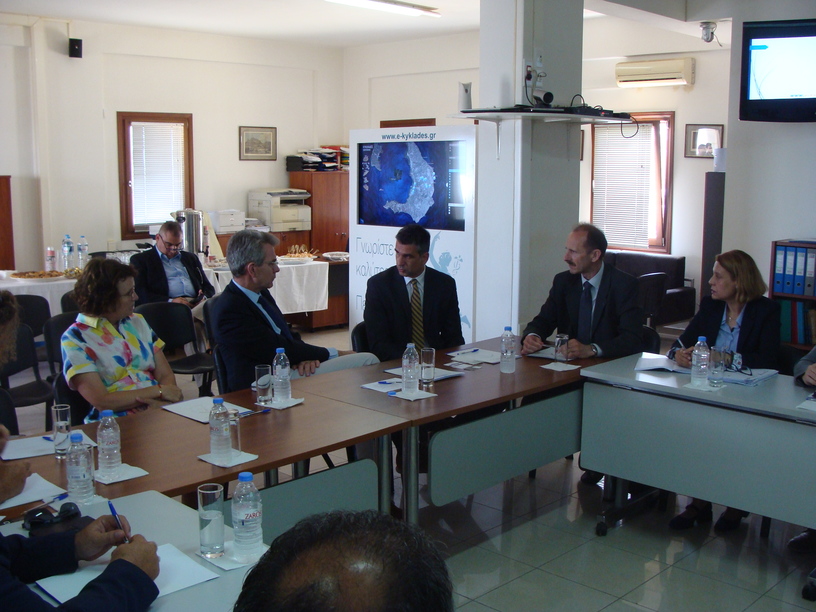 Συνάντηση εργασίας πραγματοποιήθηκε στο γραφείο του Επιμελητηρίου Κυκλάδων στη Σαντορίνη, την Παρασκευή 25 Μαΐου2018, με τον Αμερικανό Πρέσβη Geoffrey Pyatt και τον Πρόεδρο του Επιμελητηρίου Κυκλάδων, Γιάννη Ρούσσο, τα μέλη του Διοικητικού Συμβουλίου και με τους εκπροσώπους των Παραγωγικών Φορέων – Μελών του Επιμελητηρίου, από τη Σαντορίνη. Η συνάντηση πραγματοποιήθηκε, με πρωτοβουλία του Αμερικανού Πρέσβη, στο πλαίσιο της διήμερης επίσκεψης του στο νησί και αποτελεί συνέχεια της αρχικής συνάντησης γνωριμίας του Πρέσβη με το Επιμελητήριο Κυκλάδων στη Σύρο, πριν από ένα χρόνο, όπου είχε ενημερωθεί για το έργο και τις δράσεις του Επιμελητηρίου.