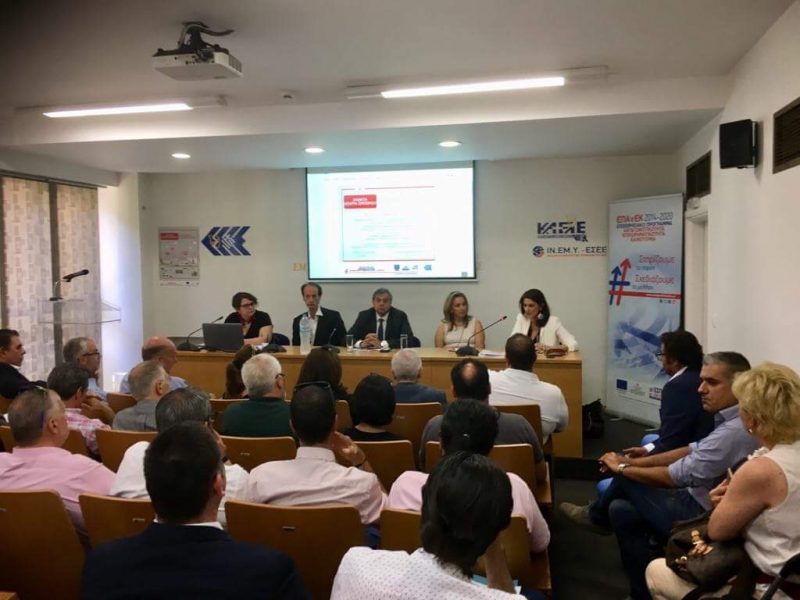 Πραγματοποιήθηκε στα γραφεία της Ε.Σ.Ε.Ε. ενημερωτική ημερίδα για το Πρόγραμμα «Ανοικτά Κέντρα Εμπορίου», που προκηρύχθηκε πρόσφατα από την Ειδική Υπηρεσία Διαχείρισης του Επιχειρησιακού Προγράμματος «Ανταγωνιστικότητα, Επιχειρηματικότητα και Καινοτομία». Στην εκδήλωση, στην οποία παρέστη η ΕΓ Διαχείρισης Τομεακών ΕΠ του ΕΤΠΑ και ΤΑ, κα. Ευγενία Φωτονιάτα, συμμετείχε πλήθος εκπροσώπων των Εμπορικών Συλλόγων, που αποτελούν δυνητικούς συνδικαιούχους των έργων του Προγράμματος.