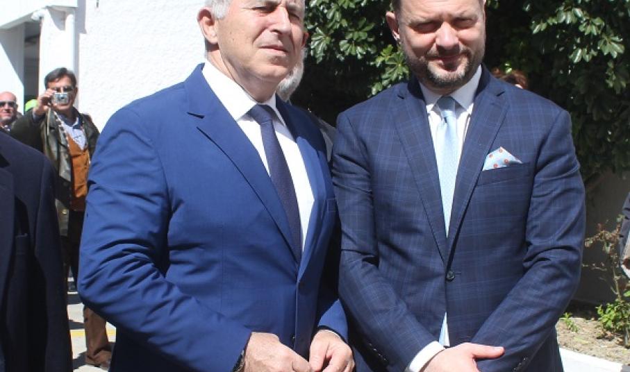 Στη Σύρο για τα επίσημα εγκαίνια που πραγματοποιήθηκαν το μεσημέρι της Κυριακής, στις εγκαταστάσεις του Νεωρίου, μετέβησαν μεταξύ άλλων ο Υπουργός Εθνικής Άμυνας, κ. Αποστολάκης και ο Υφυπουργός Οικονομίας, κ. Πιτσιόρλας, οι οποίοι συνοδεύονταν από τους κυβερνητικούς βουλευτές των Κυκλάδων (Μανιός, Συρμαλένιος).