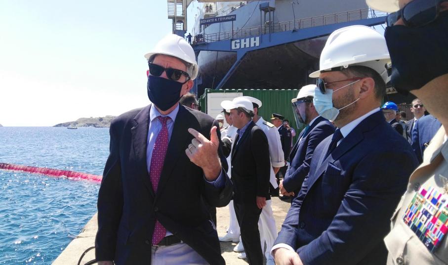 Οι κινήσεις του κ. Ξενοκώστα - για ένα Νεώριο με παρόν και μέλλον το οποίο θα λειτουργεί με πιο φιλικό τρόπο απέναντι στο περιβάλλον και στο οποίο υπάρχει έντονη η “σφραγίδα” της ποιοτικής δουλειάς των εργαζομένων -, παρουσιάστηκαν σε βίντεο στην αίθουσα συσκέψεων του ναυπηγείου, προκειμένου να ενημερωθούν τόσο ο Αμερικανός Πρέσβης, όσο επίσης, ο Υπουργός Ανάπτυξης, Άδωνις Γεωργιάδης, ο Υπουργός Εθνικής Άμυνας, Νίκος Παναγιωτόπουλος, ο Υπουργός Εργασίας, Γιάννης Βρούτσης και ο Υπουργός Ναυτιλίας και Νησιωτικής Πολιτικής, Γιάννης Πλακιωτάκης.