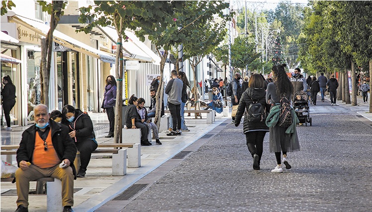 Όλη η κίνηση στην αγορά θυμίζει ημέρες γιορτών. Ο στολισμός, τα φώτα, ακόμα και η παρουσία του κόσμου, που σε καμία περίπτωση δεν αντιστοιχεί σε ημέρες καραντίνας.