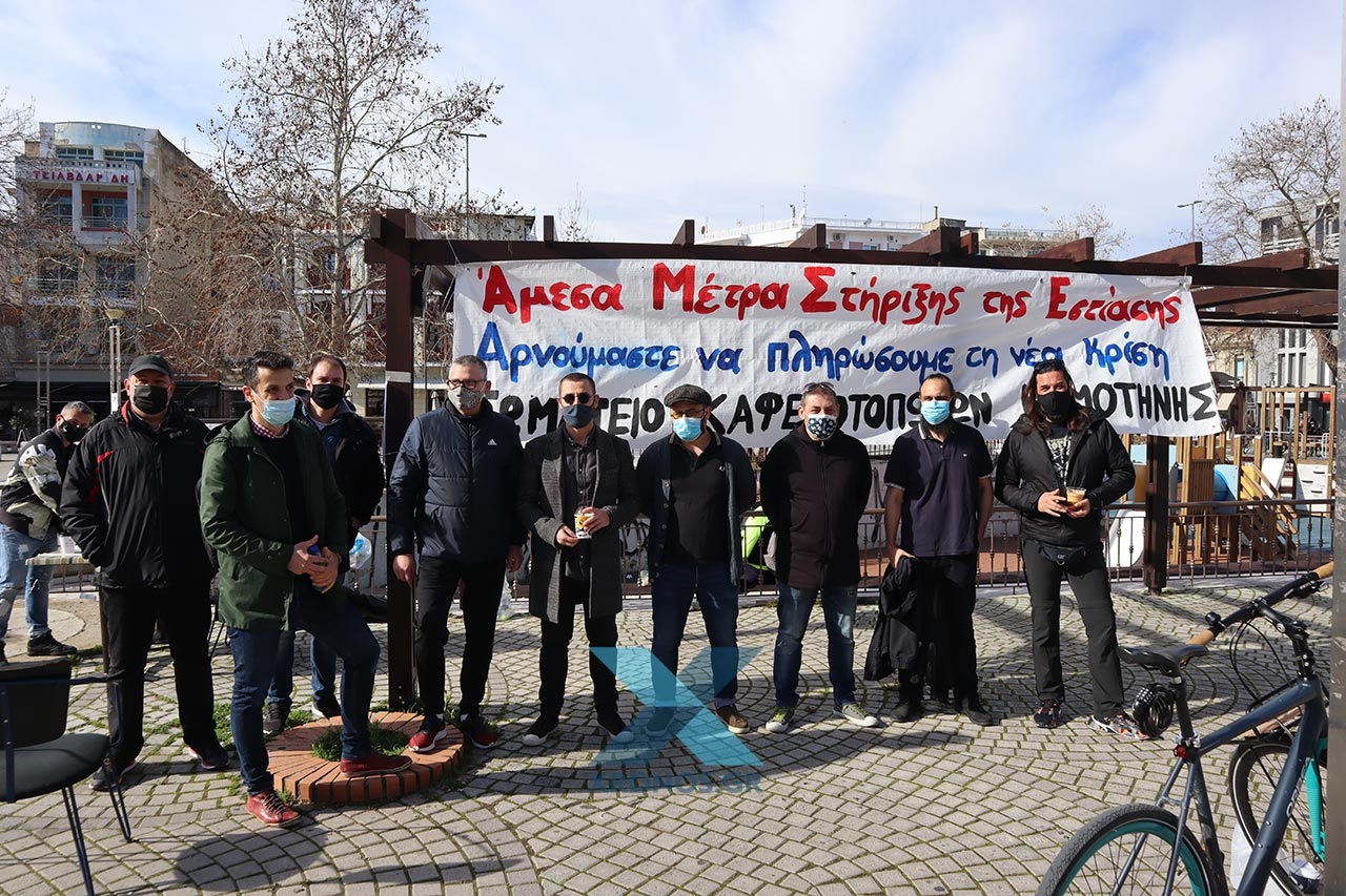 Στην πλατεία Ειρήνης μαζεύουν τα κλειδιά τους τα μέλη του Σωματείου Καφεποτοπωλών Κομοτηνής και Περιφέρειας.