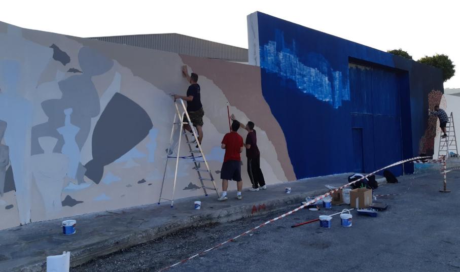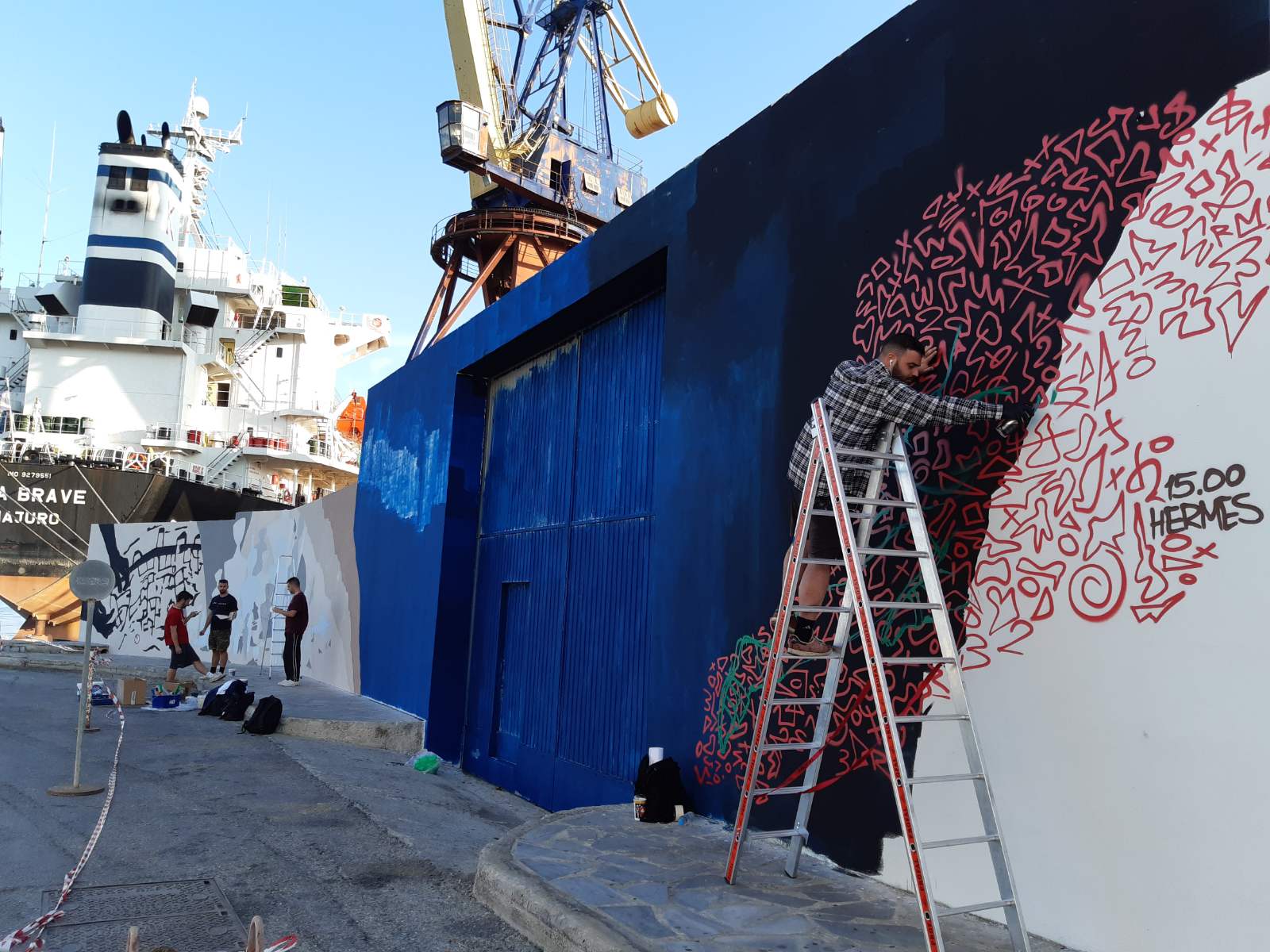 Οι καλλιτέχνες έπιασαν τα χρώματα και ξεκίνησαν την δημιουργία του εικαστικού έργου, που θα κοσμήσει τον εξωτερικό τοίχο της δυτικής πτέρυγας του ναυπηγείου της Σύρου (έναντι π. Πυροσβεστικής), στο πλαίσιο του καλλιτεχνικού διαγωνισμού, που είχε προκηρύξει η ONEX Syros Neorion Shipyards.