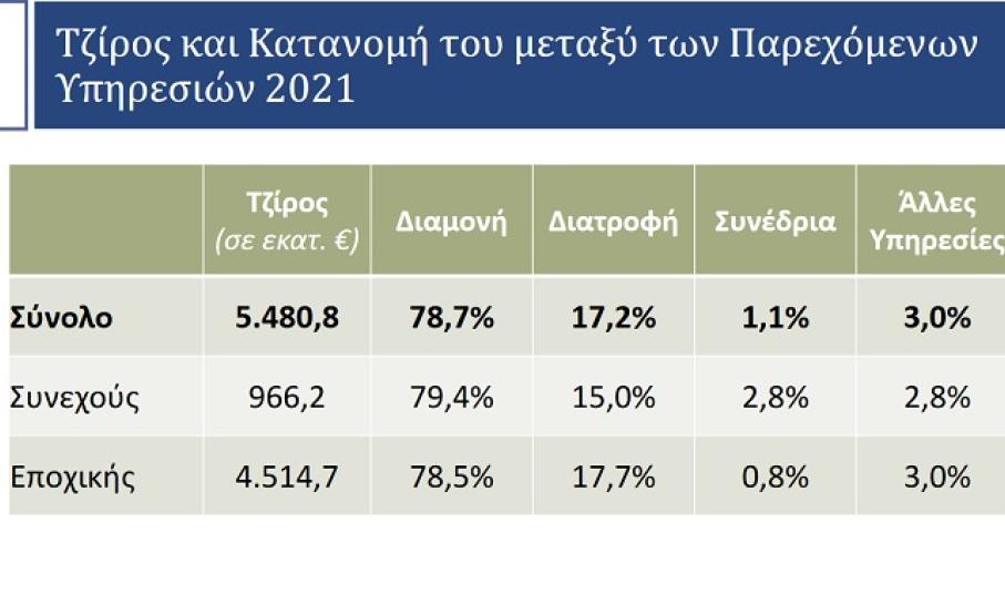 Σημειώνεται πως τα ξενοδοχεία συνεχούς λειτουργίας παρουσιάζουν μεσοσταθμική μείωση του τζίρου κατά 57% σε σχέση με το ίδιο έτος αναφοράς, σκιαγραφώντας το έντονο πρόβλημα που αντιμετωπίζουν.