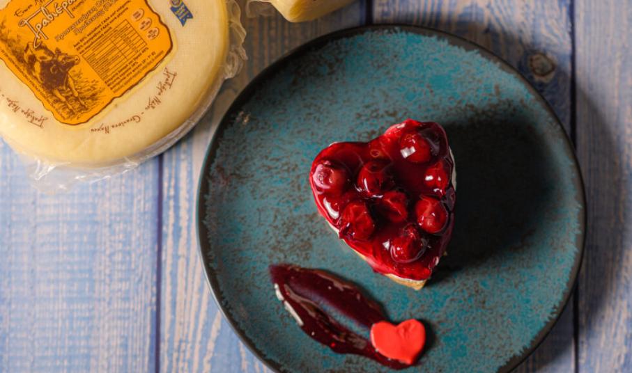 Στήσιμο γλυκού: σε φόρμα με σχήμα καρδιάς βάζουμε κάτω κάτω την βάση μπισκότο, από πάνω την κρέμα και στο τέλος το γλυκό αγριοκέρασο.