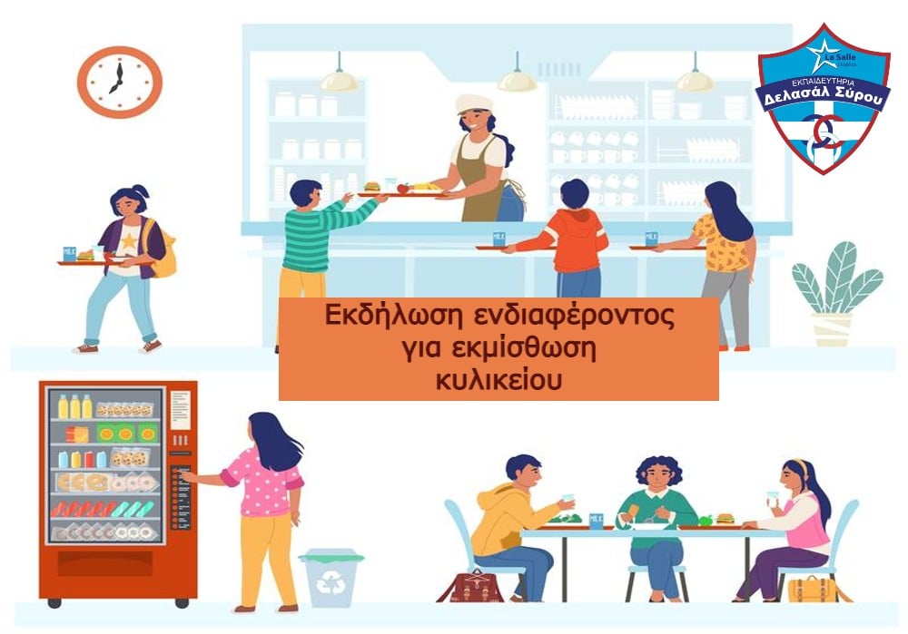 Τα Εκπαιδευτήρια Δελασάλ προβαίνουν σε μίσθωση του σχολικού κυλικείου για την εξυπηρέτηση μαθητών και εκπαιδευτικών όλων των βαθμίδων εκπαίδευσης.