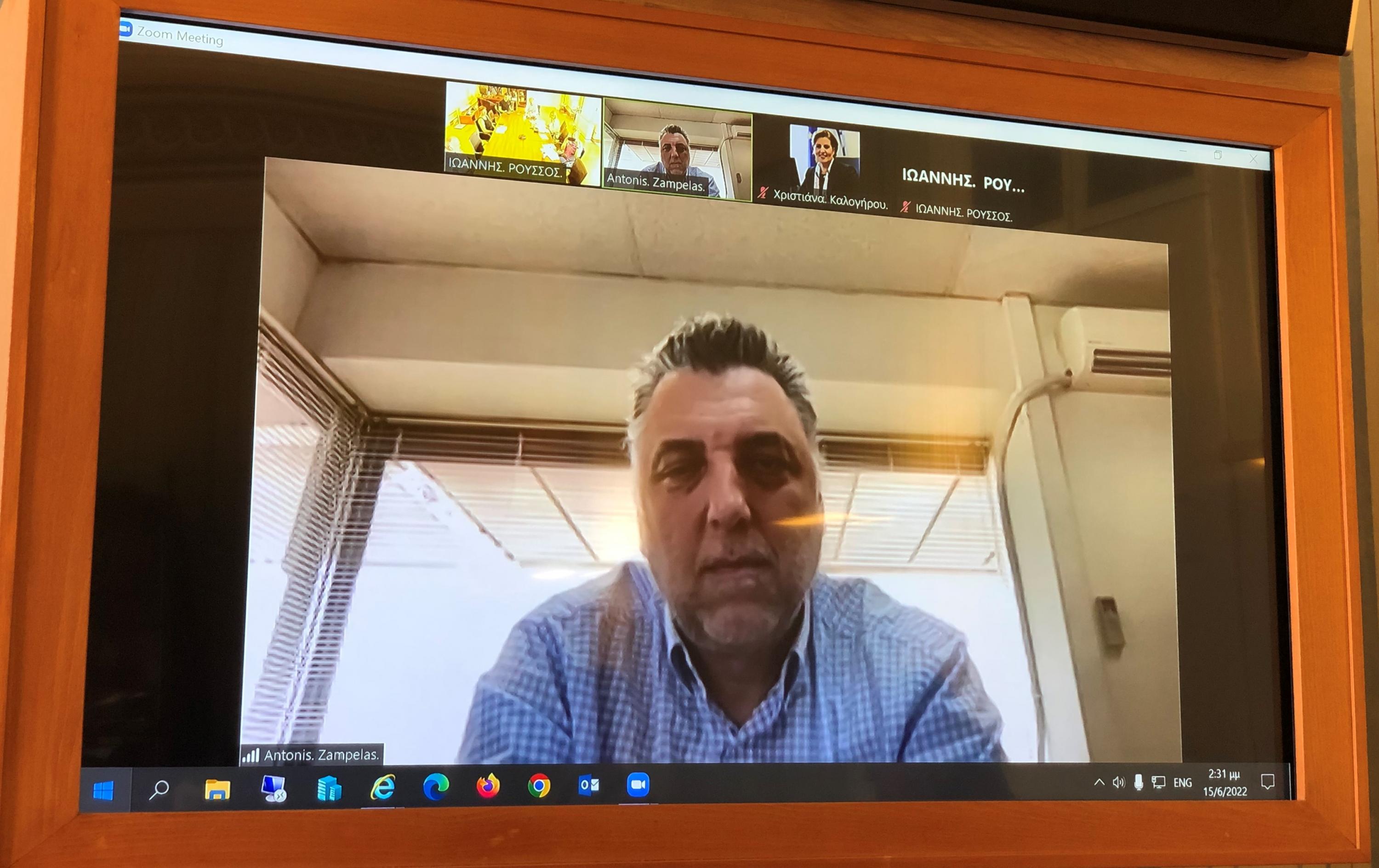 Σε τηλεδιάσκεψη συμμετείχε σήμερα Τετάρτη 15 Ιουνίου ο Πρόεδρος και στελέχη του Επιμελητηρίου Κυκλάδων με τον Πρόεδρο του ΕΦΕΤ κ. Αντώνιο Ζαμπέλα και τον Γενικό Διευθυντή κ. Παναγιώτη Βασιλόπουλο, την οποία οργάνωσε και συντόνισε η Γενική Γραμματέας Αγροτικής Ανάπτυξης & Τροφίμων κα Χριστιάννα Καλογήρου.