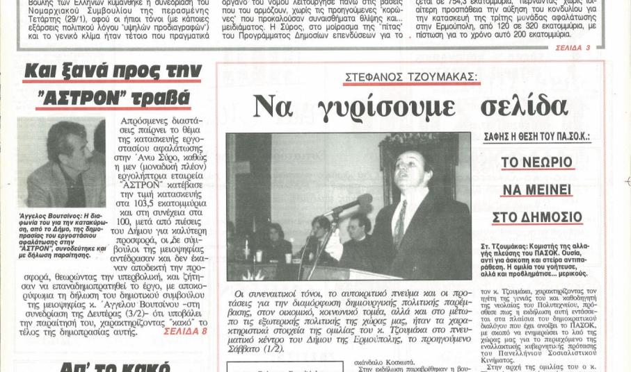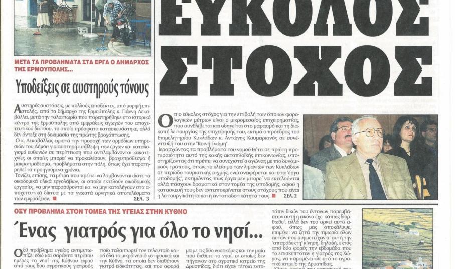 Η ύπαρξη του διαδικτύου, µε dial-up συνδέσεις αρχικά, έδωσε τη δυνατότητα να αποστέλλεται στους εκτός Σύρου συνδροµητές, ηλεκτρονικά, σε pdf αρχείο, κάθε πρωί, ταυτόχρονα µε την κυκλοφορία της σε έντυπη µορφή. Έτσι, δεν ήταν λίγες οι εκδόσεις, που µοιράστηκαν πρωί-πρωί µαζικά, ακόµα και στα µικρά σε πληθυσµό νησιά µας, τυπωµένες σε printer, όταν τα θέµατα είχαν τοπικό ενδιαφέρον.