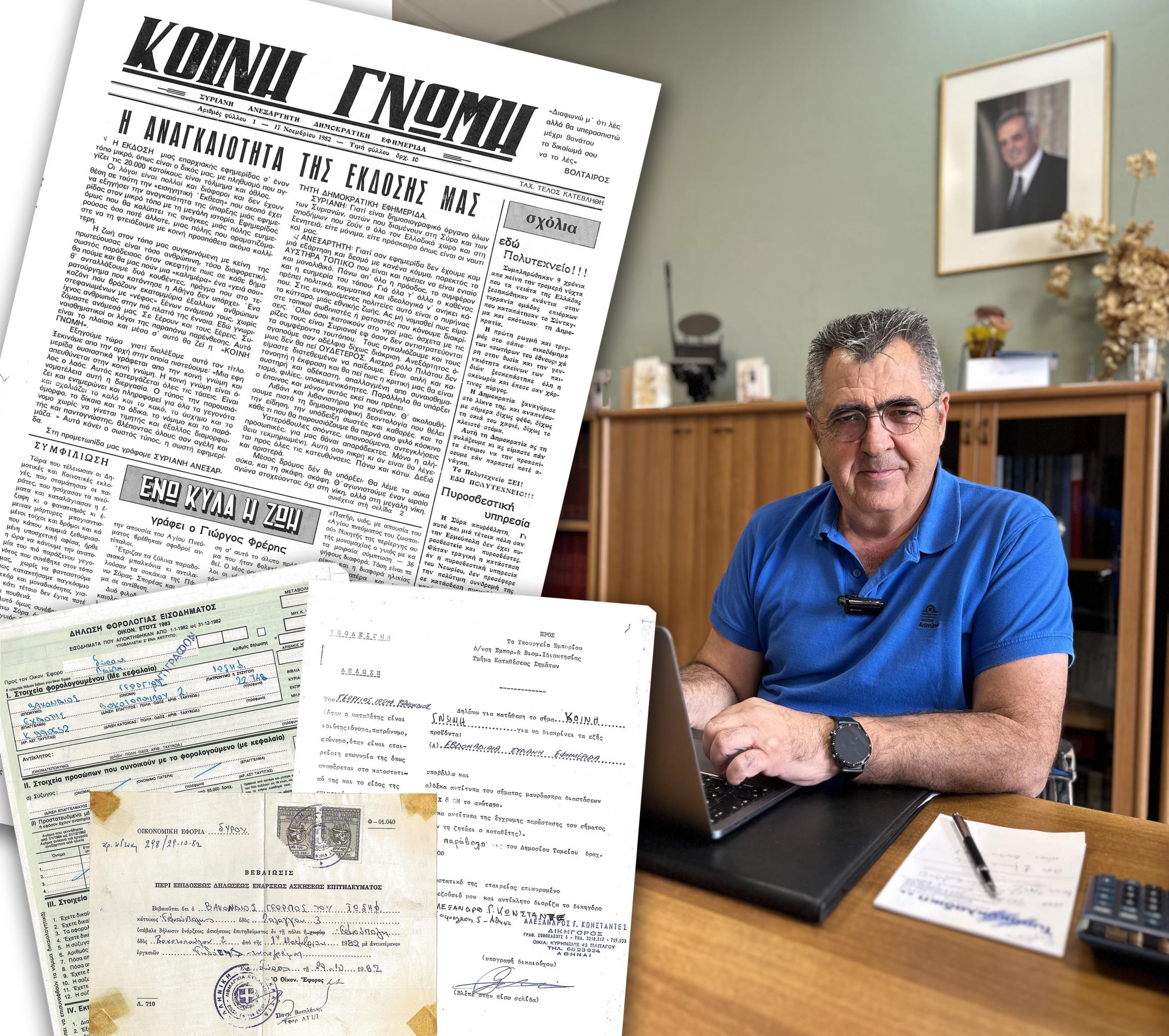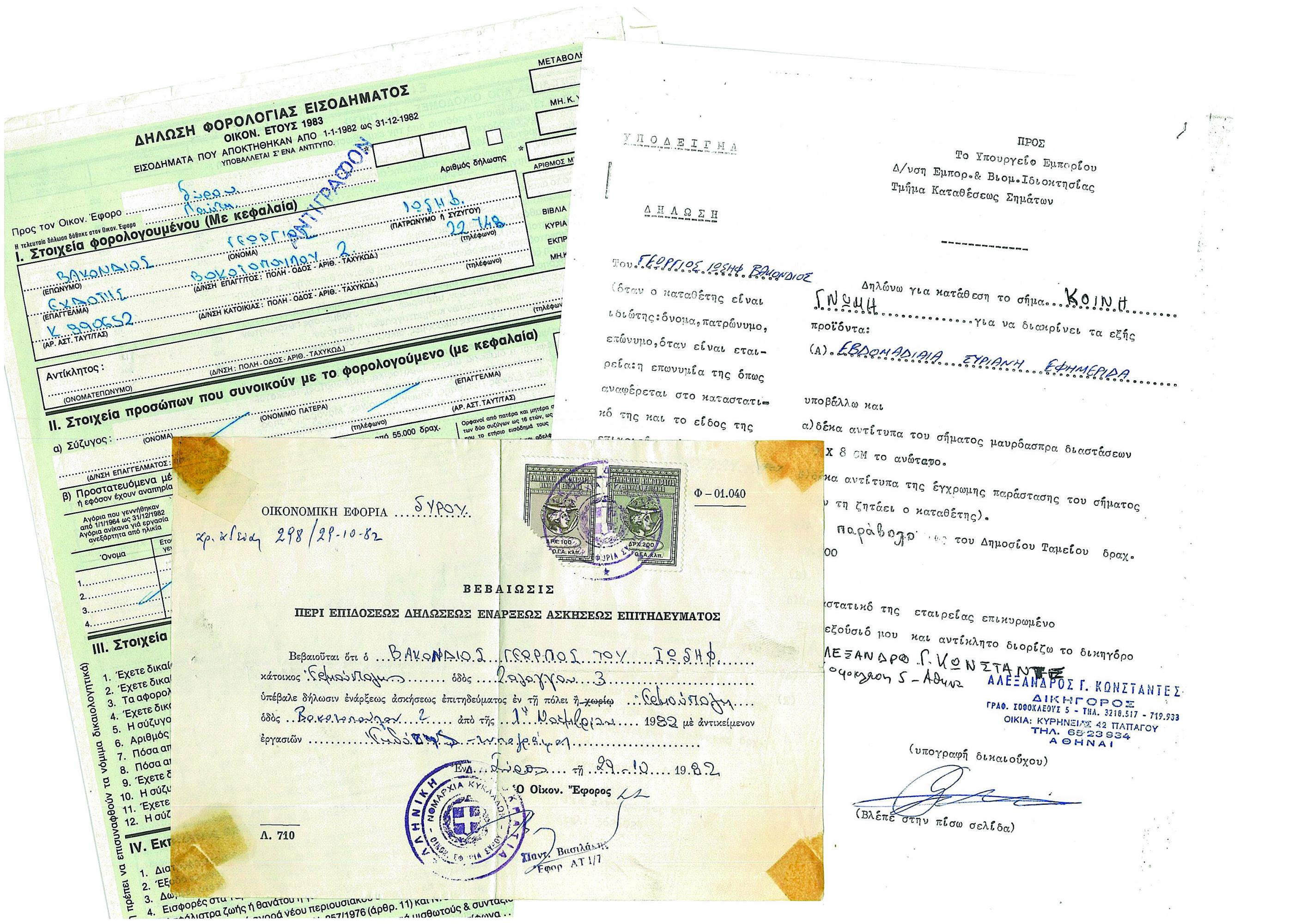 Κι εγώ, ο Γιώργος Βακόνδιος, 22χρονος, άπειρος επιχειρηµατίας, αλλά δυναµικός και εργατικός τυπογράφος, µε άδεια ασκήσεως επαγγέλµατος, ως Τυπογράφος - Εκδότης, που δεν είχε συµπληρώσει τον πρώτο µήνα από την έκδοση της, µε γνώσεις και εµπειρίες όµως, από την πρακτική µου ως βοηθός µηχανικού, σε εκτυπωτικές µονάδες αθηναϊκών εφηµερίδων.