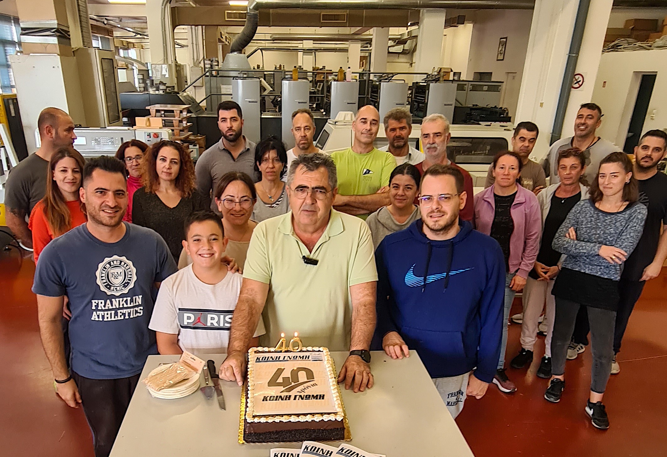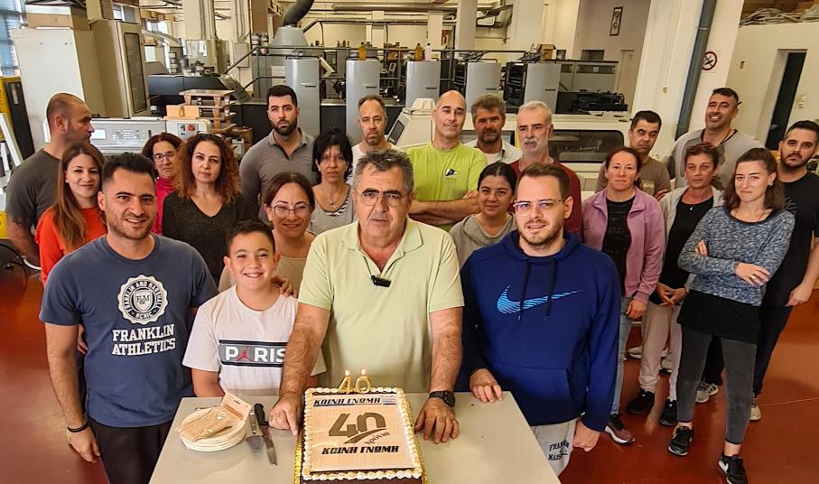 Εορταστικό κλίμα υπήρξε για τη συμπλήρωση των 40 ετών της εφημερίδας “Κοινή Γνώμη” στις εγκαταστάσεις της “Τυποκυκλαδικής”, το μεσημέρι της περασμένης Πέμπτης, όπου και οι εργαζόμενοι τόσο του εντύπου, όσο και της εκτυπωτικής μονάδας αντάλλαξαν ευχές με τον Γιώργο Βακόνδιο.
