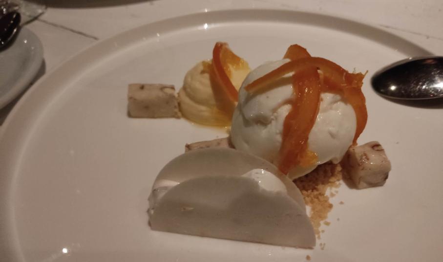 Εκμέκ Κανταϊφι, παγωτό καϊμάκι, πραλίνα φουντουκιού σιρόπι τζίντζερ και φιστικί Αιγίνης