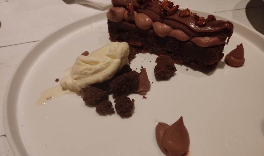 Σοκολατόπιτα, με καραμέλα και παγωτό βανίλια