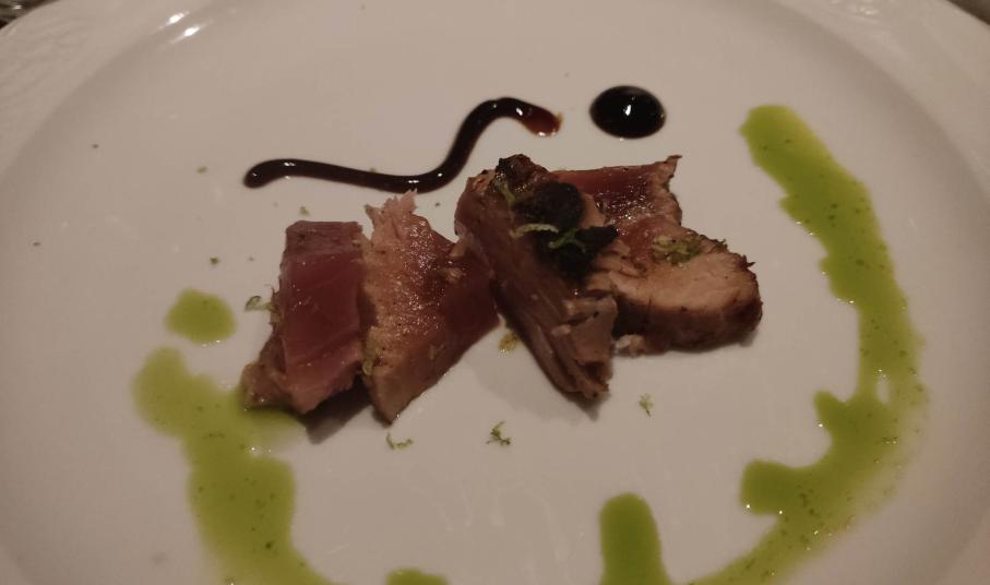 Μπριζόλα, φιλέτο τόνου, με συνοδεία αλμύρας και αχινού