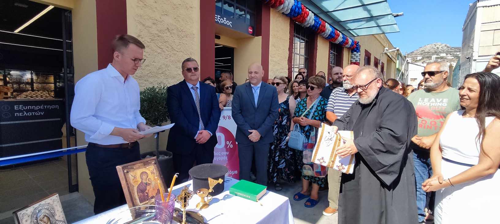 Χαιρετισμό απηύθυναν ο δήμαρχος Σύρου - Ερμούπολης, Νίκος Λειβαδάρας, καθώς και εκπρόσωποι της αλυσίδας από την Αθήνα.