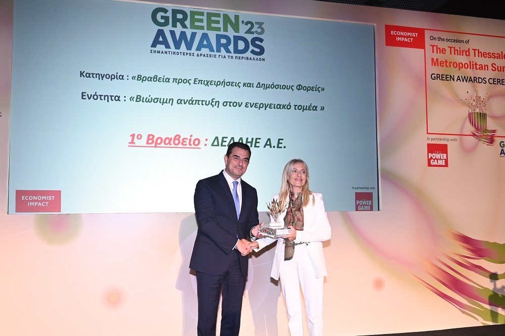 Οι σημαντικότερες δράσεις στην Ελλάδα για το περιβάλλον σε περιφέρειες, δήμους, φορείς και επιχειρήσεις της χώρας που έχουν επιτύχει υψηλά ποσοστά ανακύκλωσης και εφαρμόζουν πρότυπες περιβαλλοντικές πολιτικές επιβραβεύθηκαν για τρίτη χρονιά, στην τελετή απονομής των Green Awards 2023, στη Θεσσαλονίκη, στο πλαίσιο του συνεδρίου του Economist «The Third Thessaloniki Metropolitan Summit».
