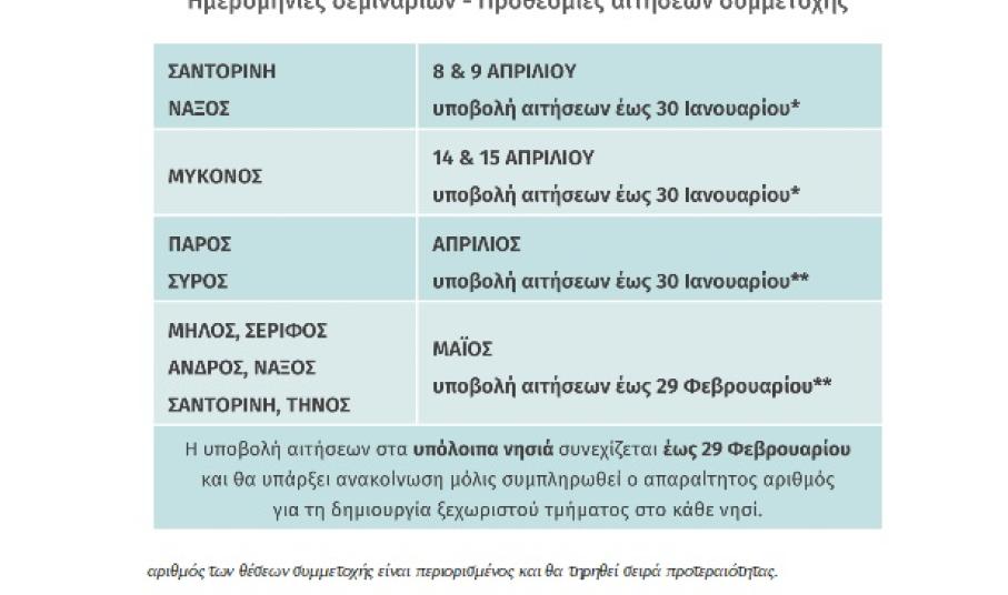 Όσοι δεν έχουν εκδηλώσει ενδιαφέρον και επιθυμούν να λάβουν μέρος είναι απαραίτητο να υποβάλουν τα δικαιολογητικά συμμετοχής εντός των ημερομηνιών που αναφέρονται στον παρακάτω πίνακα, καθώς τα τμήματα πρέπει να υποβληθούν για έγκριση τουλάχιστον 60 ημέρες πριν τη διοργάνωσή τους, σύμφωνα με την εγκύκλιο του Υπουργείου Εργασίας.