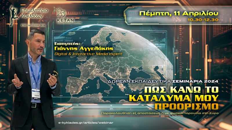 Για τη δυνατότητα να προσαρμόζονται άμεσα οι επιχειρήσεις και οι άνθρωποί τους, στις συνεχώς μεταβαλλόμενες συνθήκες της αγοράς και του έντονου ανταγωνισμού συνεχίζει να μεριμνά συστηματικά το Επιμελητήριο Κυκλάδων, το οποίο ανοίγει σήμερα, τον νέο κύκλο δωρεάν σεμιναρίων για τα μέλη του.