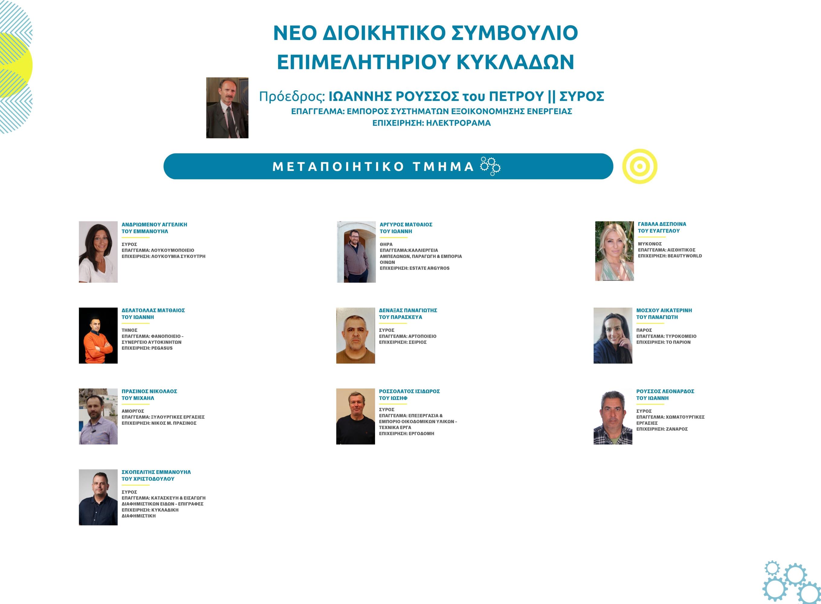 Ευχαριστούμε όλους όσους συμμετείχαν στην εκλογική διαδικασία και συνέβαλαν στο να δυναμώσει η φωνή του Επιμελητηρίου και των κυκλαδιτών επιχειρηματιών".
