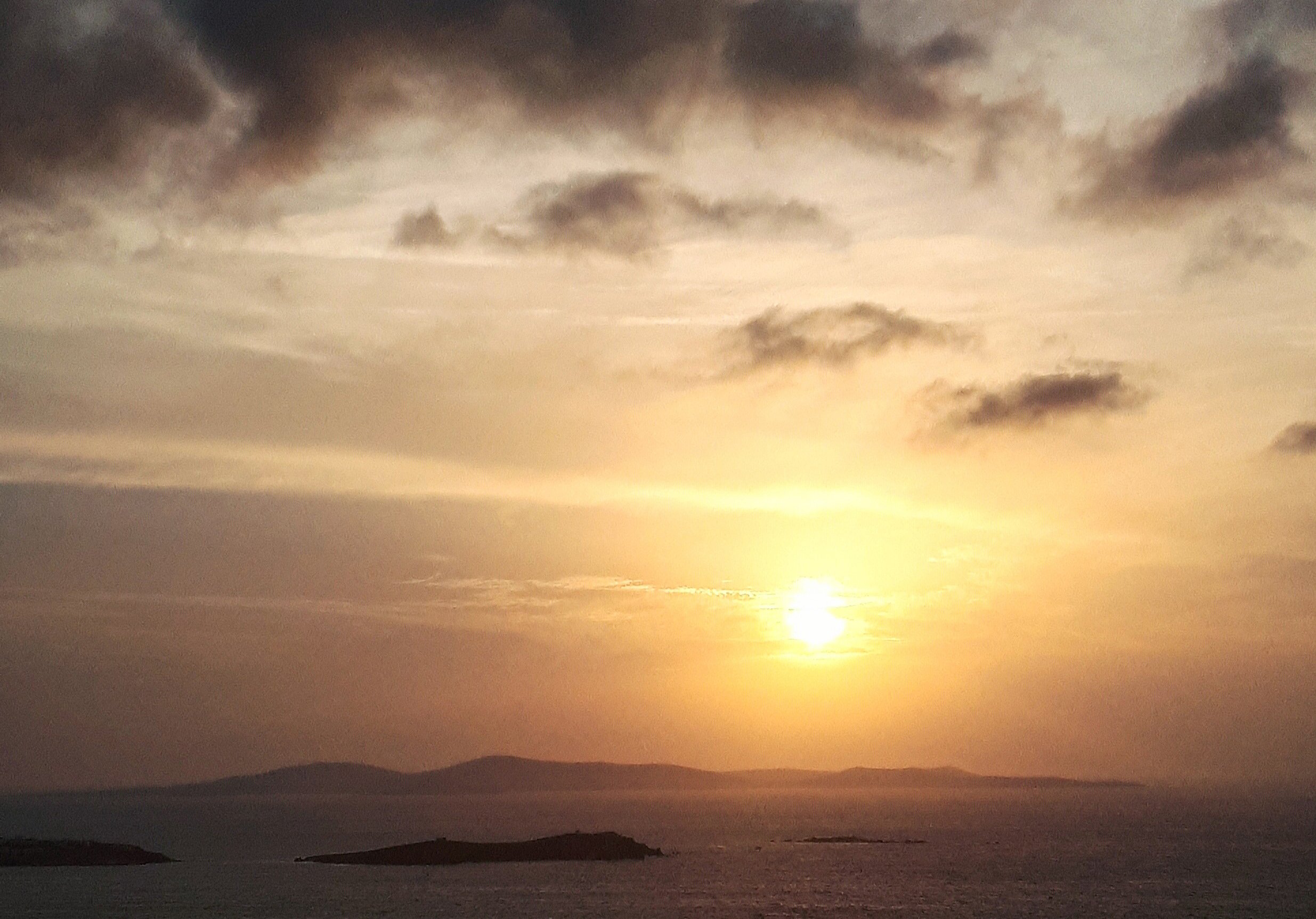 Μύκονος, ηλιοβασίλεμα με φόντο τη Σύρο