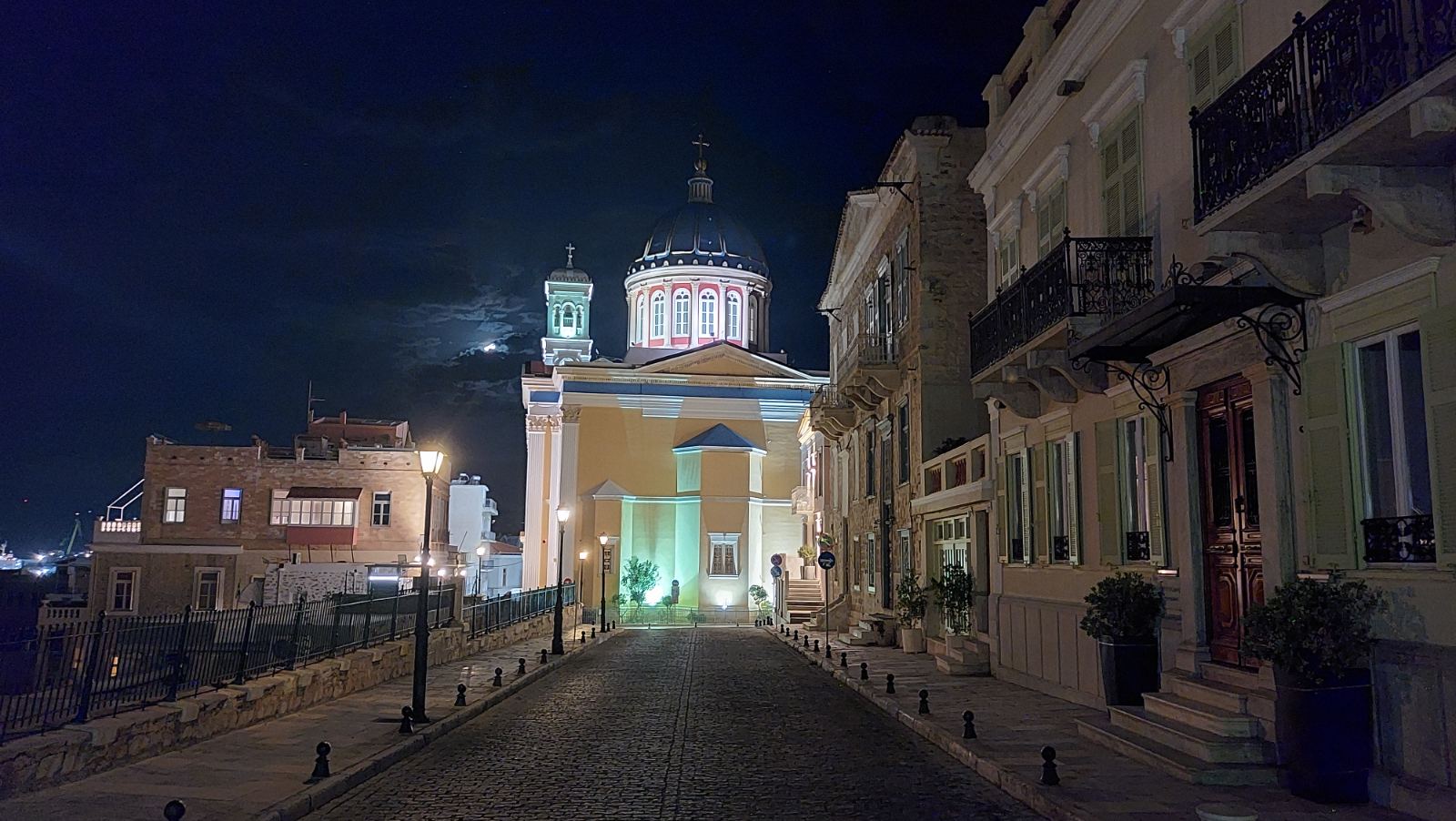 Συνοικία Βαπόρια, στην Ερμούπολη με φεγγάρι. Καλλιόπη Ξενοπούλου.