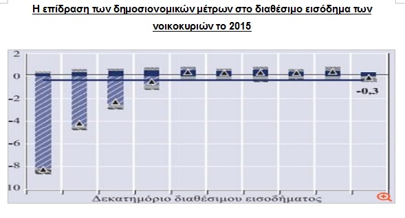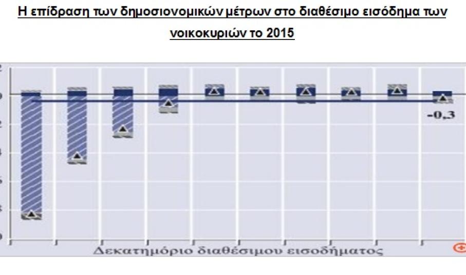 Σύμφωνα με ειδικό κεφάλαιο στην Έκθεση του Διοικητή της ΤτΕ για τις αναδιανεμητικές επιδράσεις των δημοσιονομικών μέτρων στην Ελλάδα κατά την περίοδο 2010-2015, το 2015, έλαβε χώρα μια πρωτόγνωρη μείωση διαθέσιμου εισοδήματος των φτωχότερων Ελλήνων.