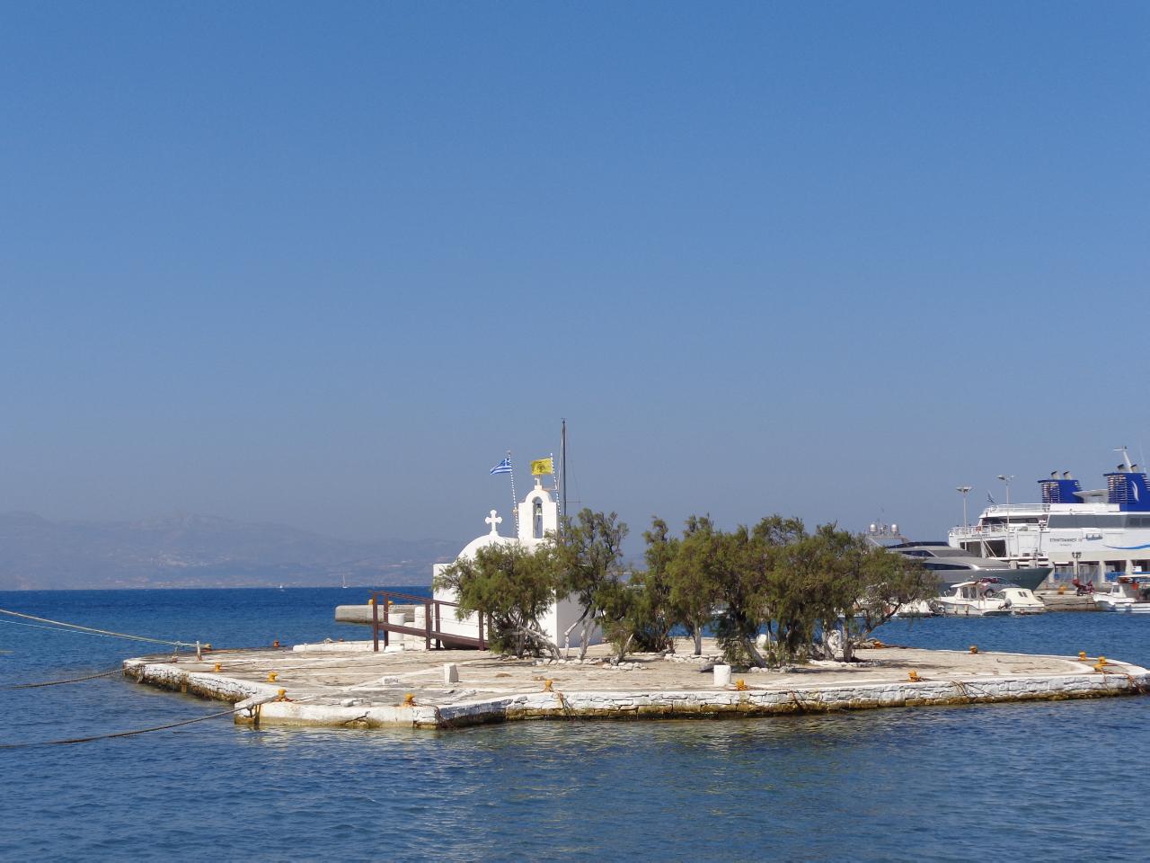 Το εκκλησάκι της Παναγίας Μυρτιδιώτισσας στη μικρή νησίδα του λιμανιού της Νάξου