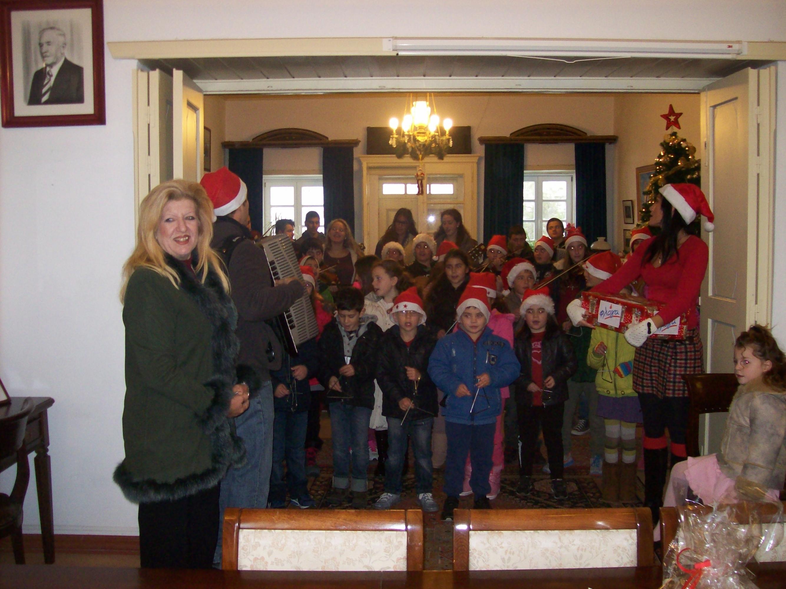 Σήμερα, παραμονή Χριστουγέννων η δημαρχεύουσα Μυκόνου, Ειρήνη Γρυπάρη δέχθηκε στο Δημαρχείο του νησιού πολλά παιδιά, φορείς και χορωδίες και άκουσε παραδοσιακά κάλαντα και χαρμόσυνα τραγούδια.