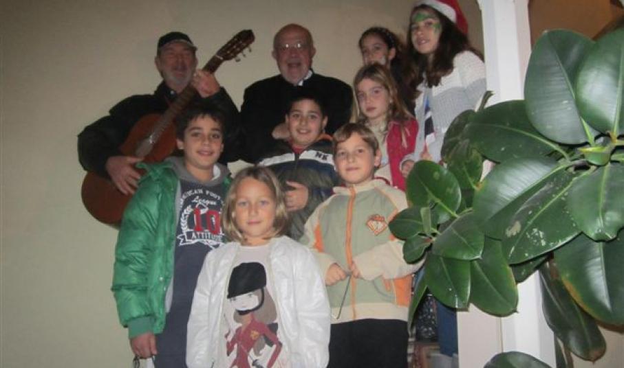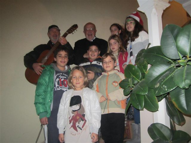Ο Επίσκοπος π. Φραγκίσκος υποδέχθηκε φανερά συγκινημένος αυτή τη ζεστή Απανωσυριανή συντροφιά η οποία του έψαλε τα κάλαντα στην Επισκοπική κατοικία και φωτογραφήθηκε μαζί της.