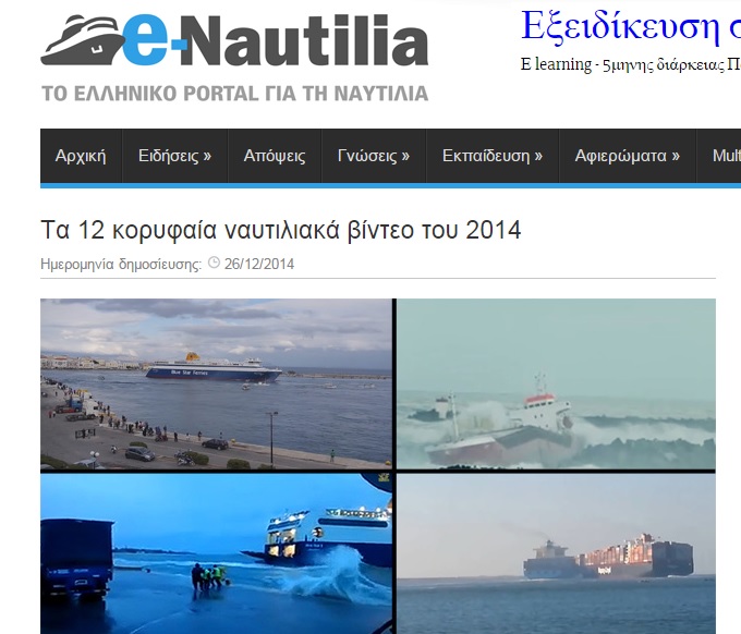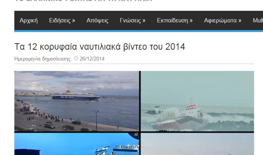 Ανάμεσα στα δώδεκα κορυφαία ναυτιλιακά βίντεο του ελληνικού portal για τη ναυτιλία, “e-nautilia” για το 2014 συμπεριλαμβάνεται το βίντεο της “Κοινής Γνώμης” που αφορά στον συγκινητικό αποχαιρετισμό του Blue Star Ithaki στο λιμάνι της Ερμούπολης.