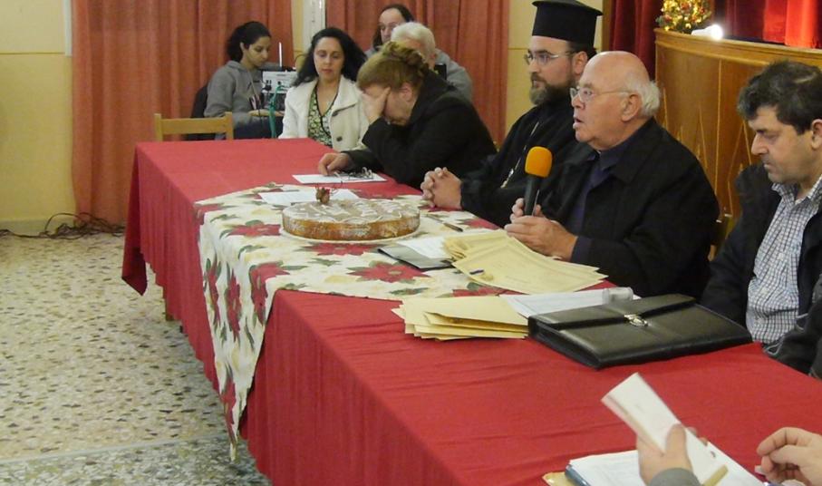 Στον χαιρετισμό του, ο πρόεδρος π. Αντώνιος Βουτσίνος αναφέρθηκε στις καρποφόρες προσπάθειες των μελών και φίλων του συλλόγου για τη συνέχιση της λειτουργίας του σωματείου, ο οποίος πριν από έναν χρόνο είχε τεθεί σε κίνδυνο εξαιτίας των ισχνών οικονομικών πόρων του.