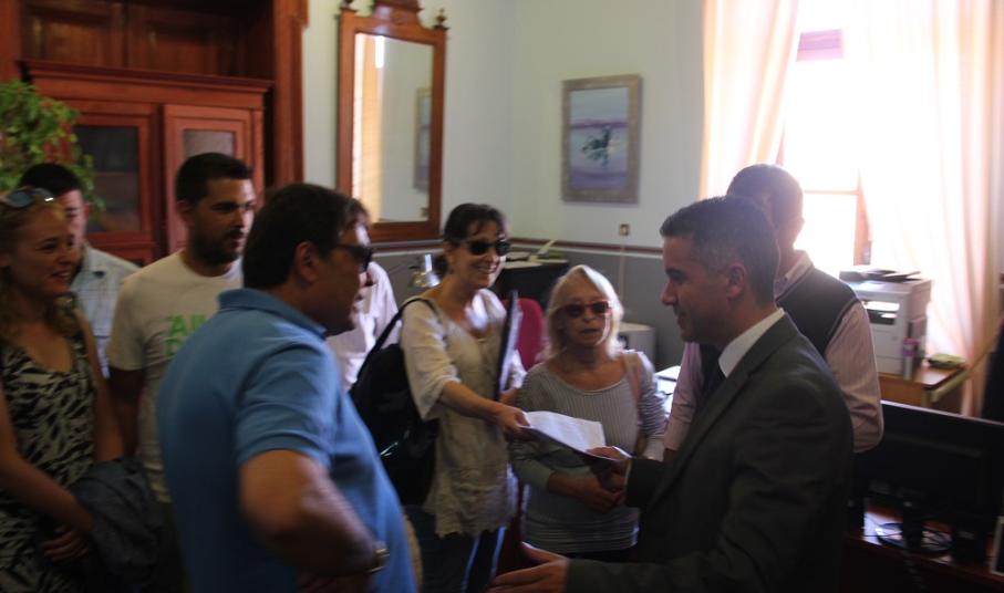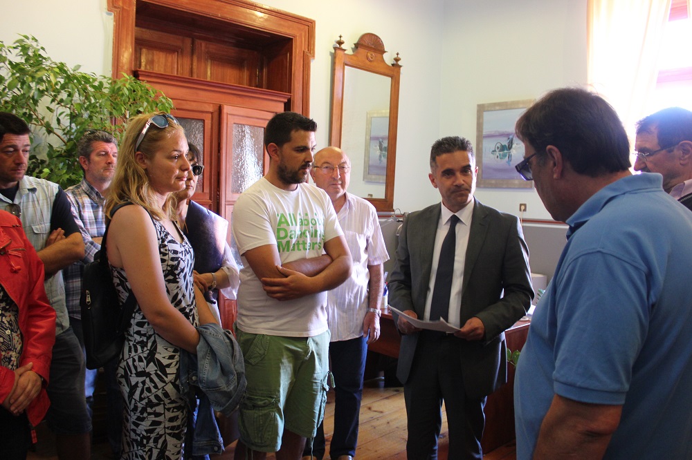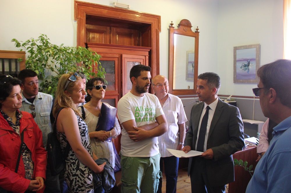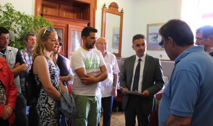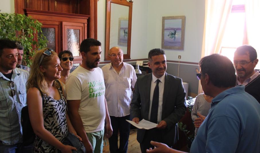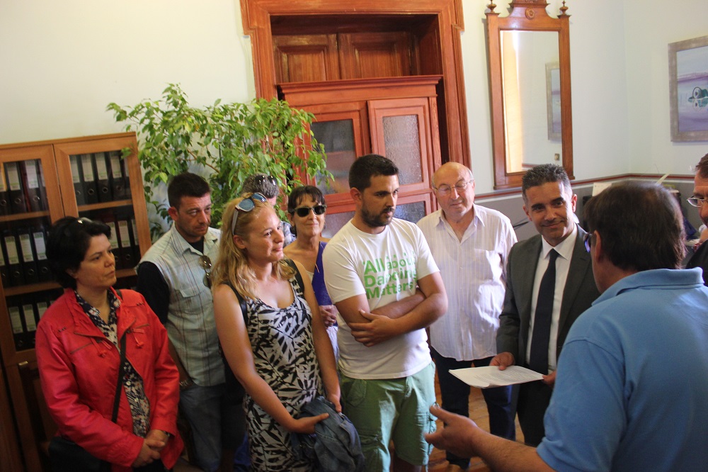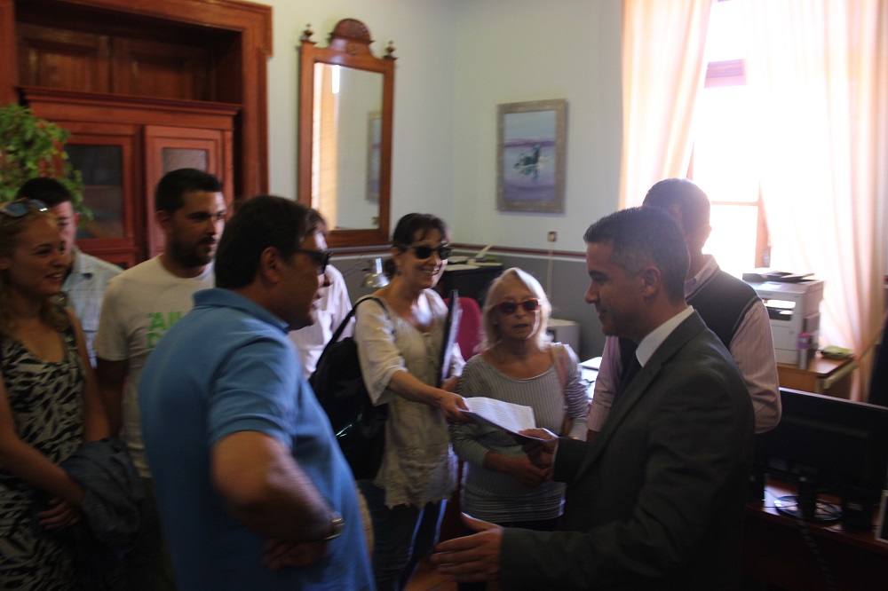 Συγκεκριμένα, λίγο μετά τη μία το μεσημέρι οι κάτοικοι συναντήθηκαν στην είσοδο του Δημαρχιακού Μεγάρου και μετέβησαν από κοινού στο γραφείου του δημάρχου ώστε να του γνωστοποιήσουν τις θέσεις τους για το πολυσυζητημένο θέμα της λήψης μέτρων από τις 15 Ιουνίου έως και τις 15 Σεπτεμβρίου.