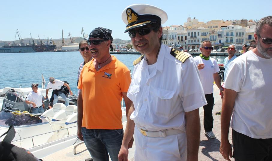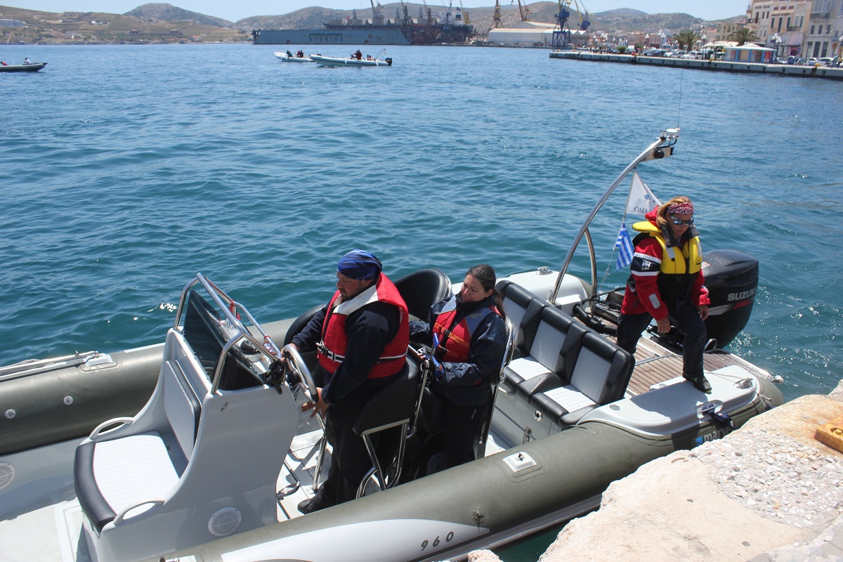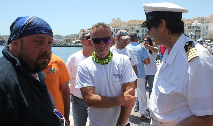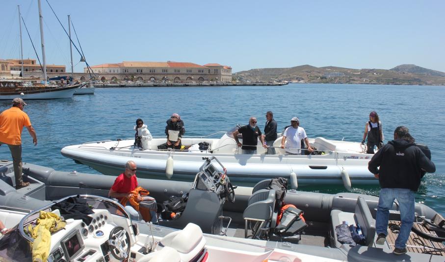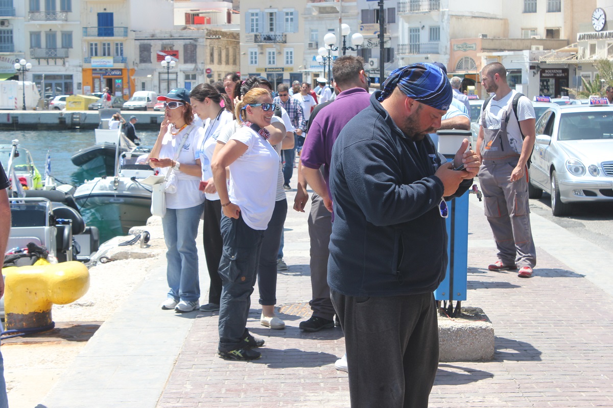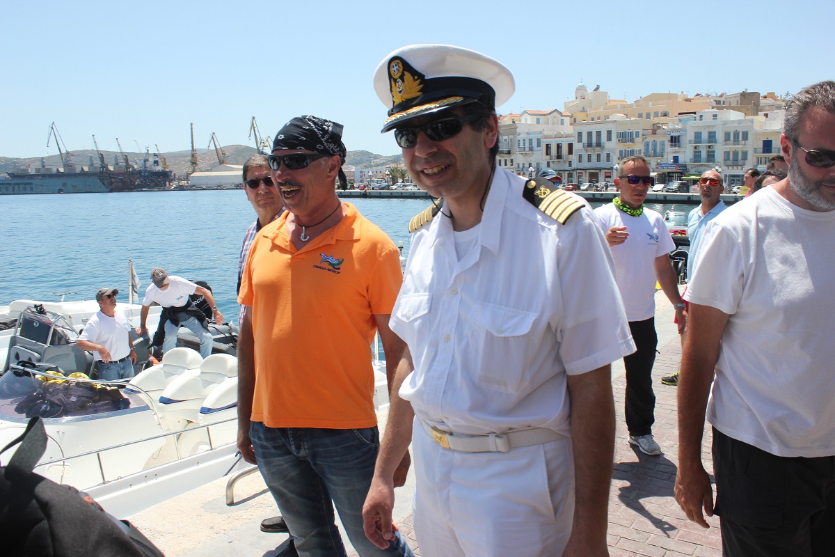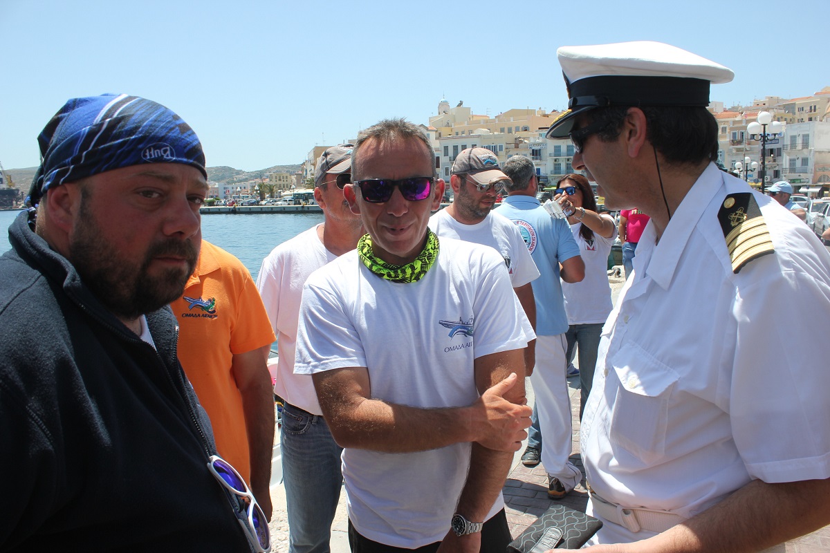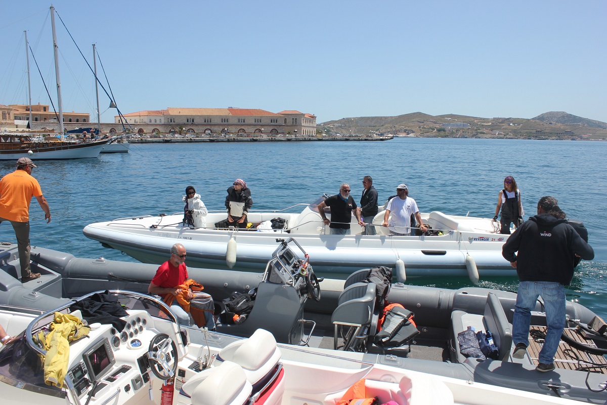 Την Ομάδα υποδέχτηκαν στο λιμάνι ο Δήμαρχος Σύρου – Ερμούπολης Γιώργος Μαραγκός, ο Λιμενάρχης Σύρου Ιάκωβος Γκύζης, μέλη του Ομίλου Φουσκωτών και Ταχυπλόων Σκαφών Σύρου και φίλοι της ομάδας Αιγαίου από το νησί.