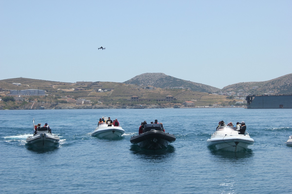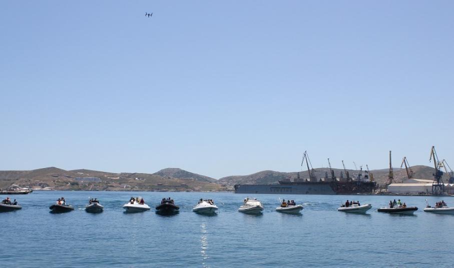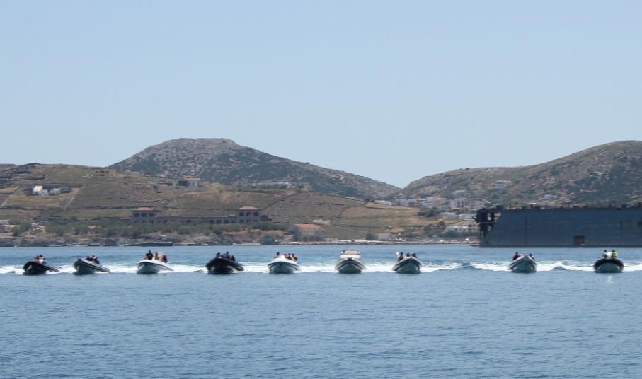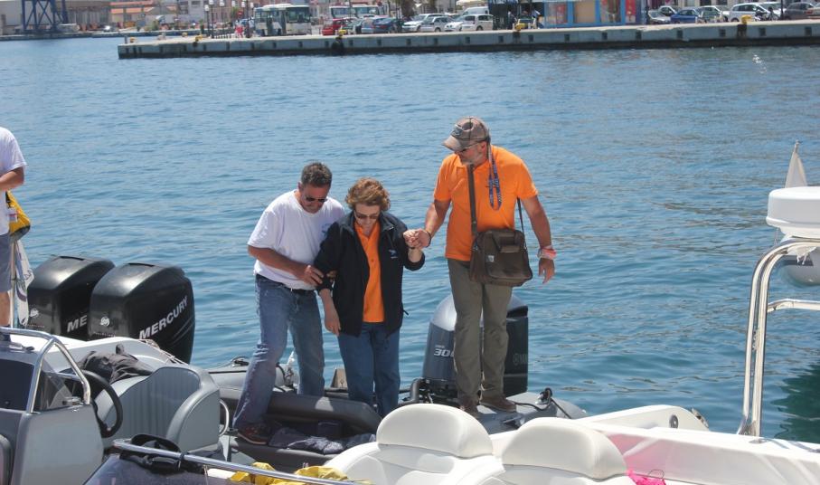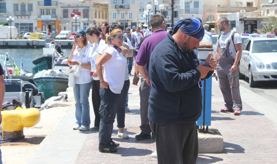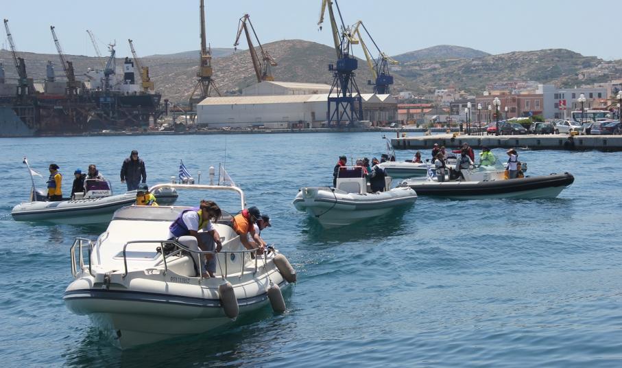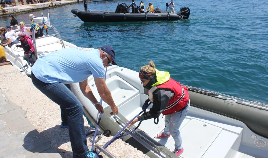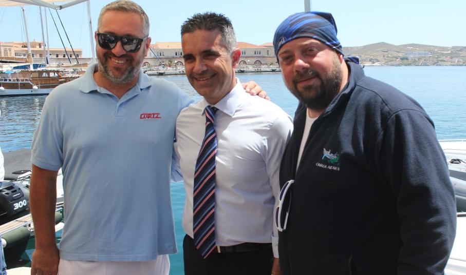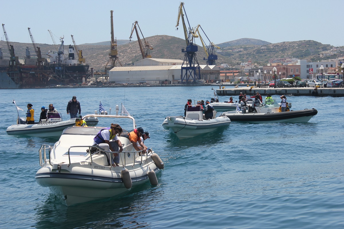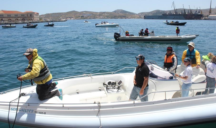 Την Ομάδα υποδέχτηκαν στο λιμάνι ο Δήμαρχος Σύρου – Ερμούπολης Γιώργος Μαραγκός, ο Λιμενάρχης Σύρου Ιάκωβος Γκύζης, μέλη του Ομίλου Φουσκωτών και Ταχυπλόων Σκαφών Σύρου και φίλοι της ομάδας Αιγαίου από το νησί.