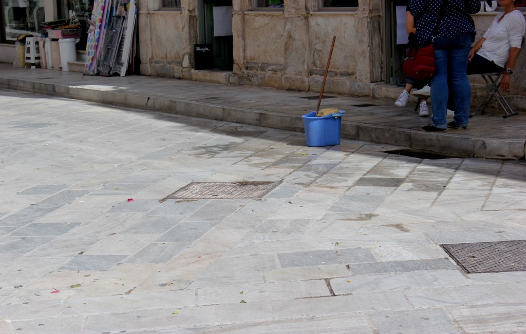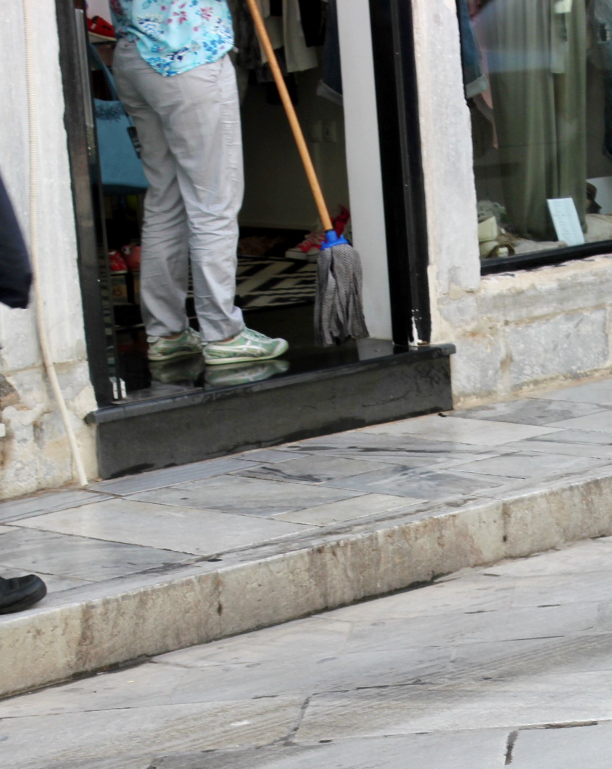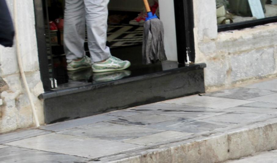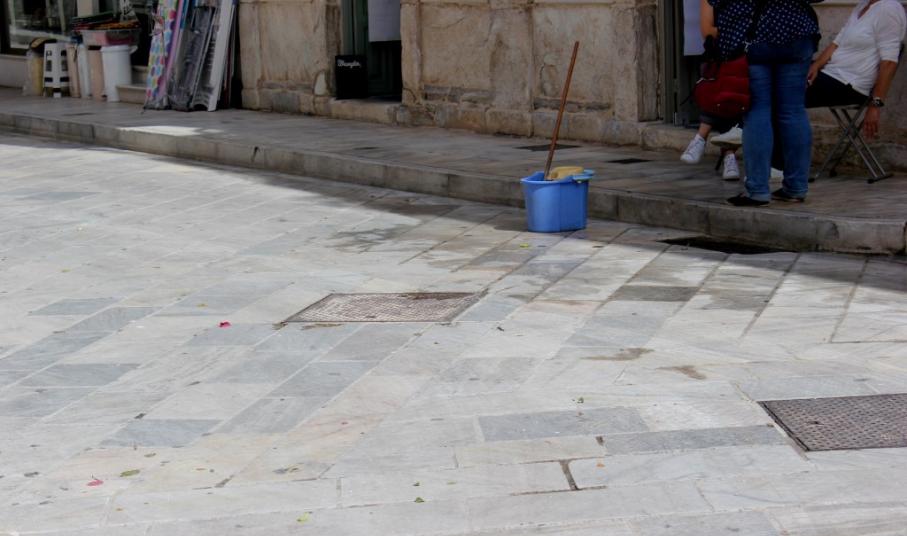 Πολλοί ήταν οι επιχειρηματίες, οι οποίοι λίγο μετά το άνοιγμα των καταστημάτων, ξεκίνησαν τη... φασίνα, καθαρίζοντας μέρος του πεζοδρομίου ή και του δρόμου, μπροστά από την είσοδό τους.