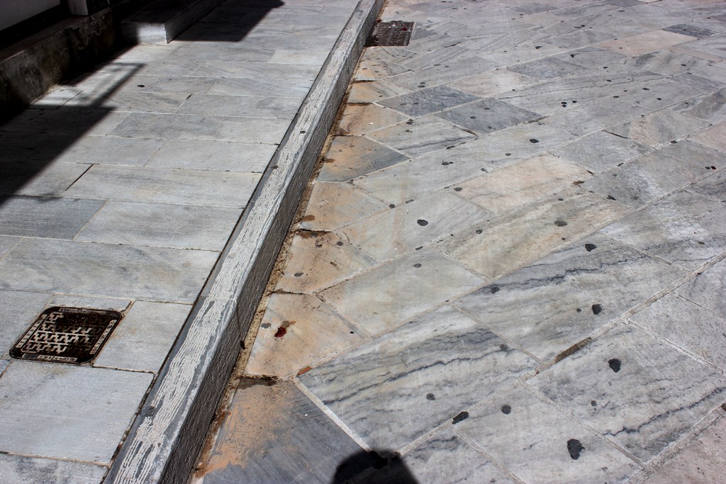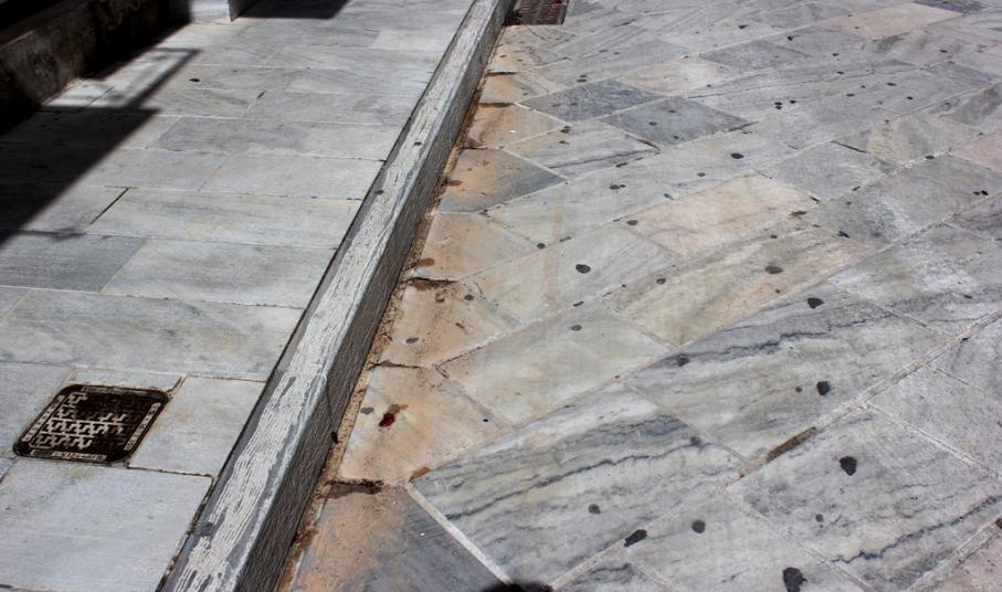Σήμερα το πρωί, περαστικοί και καταστηματάρχες ήρθαν αντιμέτωποι με το κοκκινόχωμα, που άφησε πίσω της η νεροποντή και το οποίο βρισκόταν, κυριολεκτικά, παντού, λερώνοντας δρόμους, πεζοδρόμια, εισόδους καταστημάτων, κ.α.