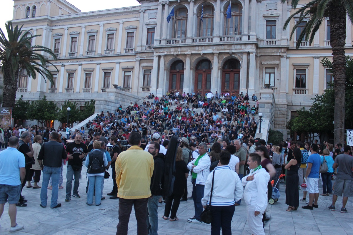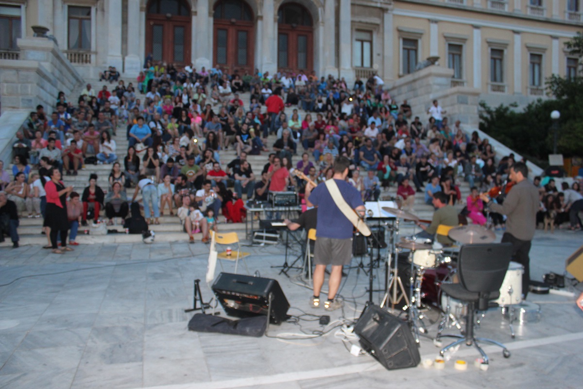 Συγκινητική ήταν η συμμετοχή της συριανής κοινωνίας στην χθεσινή συναυλία αλληλεγγύης που πραγματοποιήθηκε στην πλατεία Μιαούλη από τοπικά συγκροτήματα του νησιού για την υποστήριξη των απεργών του Νεωρίου.