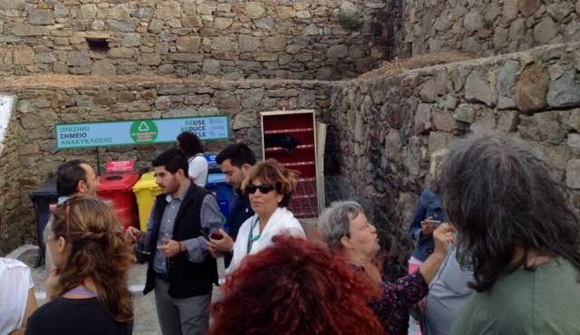 Η Μυρτώ Φοίφα που οργανώνει το πρότυπο δίκτυο Re:Think στην Καλαμάτα ενημέρωσε το κοινό για τη χρήση και τα οφέλη του κομποστοποιητή. Ο Δημήτρης Καλφάκης, μέλος του Δ.Σ του Α. Σ. ΜΟΙΚΟΝΟΣ, μίλησε για τις επιδιώξεις και τα οφέλη του συνεταιρισμού από την συνεργασία του με το Δήμο Μυκόνου και την ΚΔΕΠΠΑΜ, τονίζοντας τη σημασία του εγχειρήματος, για δημοτική ανακύκλωση με κοινωνική βάση.