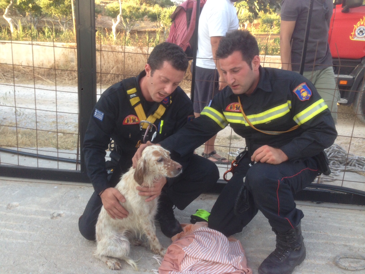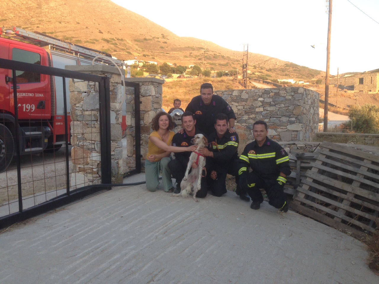 Σήμερα Σάββατο 13 Ιουνίου 2015 και περί Ω/19:12 περίπου ενημερώθηκε η Υπηρεσία μας για πτώση ζώου (σκύλου) σε πηγάδι βάθους περίπου 10 μέτρων με νερό, στην περιοχή «Δελφίνι» Σύρου. Άμεσα η Πυρ/κή έξοδος με ένα (1) όχημα και τέσσερις (4) άνδρες έσπευσε στο σημείο με ειδικό εξοπλισμό διασωστικής σειράς όπου ανέσυρε το ζώο ζωντανό, παραδίδοντάς το στην ιδιοκτήτριά του που ήταν παρούσα. Στο σημείο βρέθηκαν και ιδιώτες που συνέδραμαν στην προσπάθεια των Πυροσβεστών.