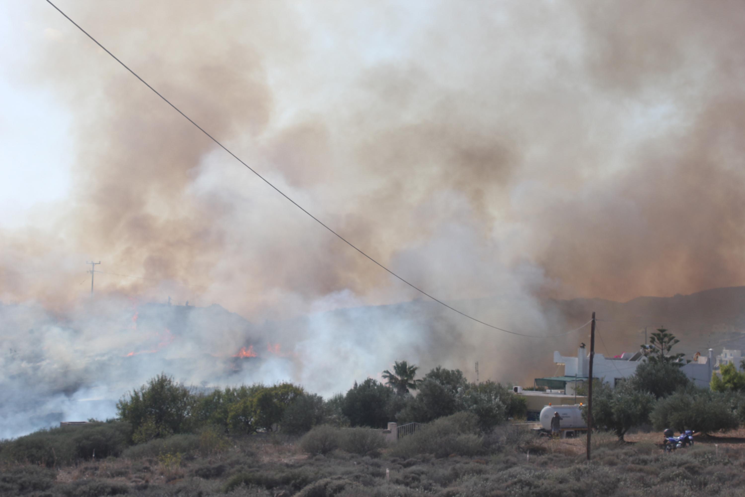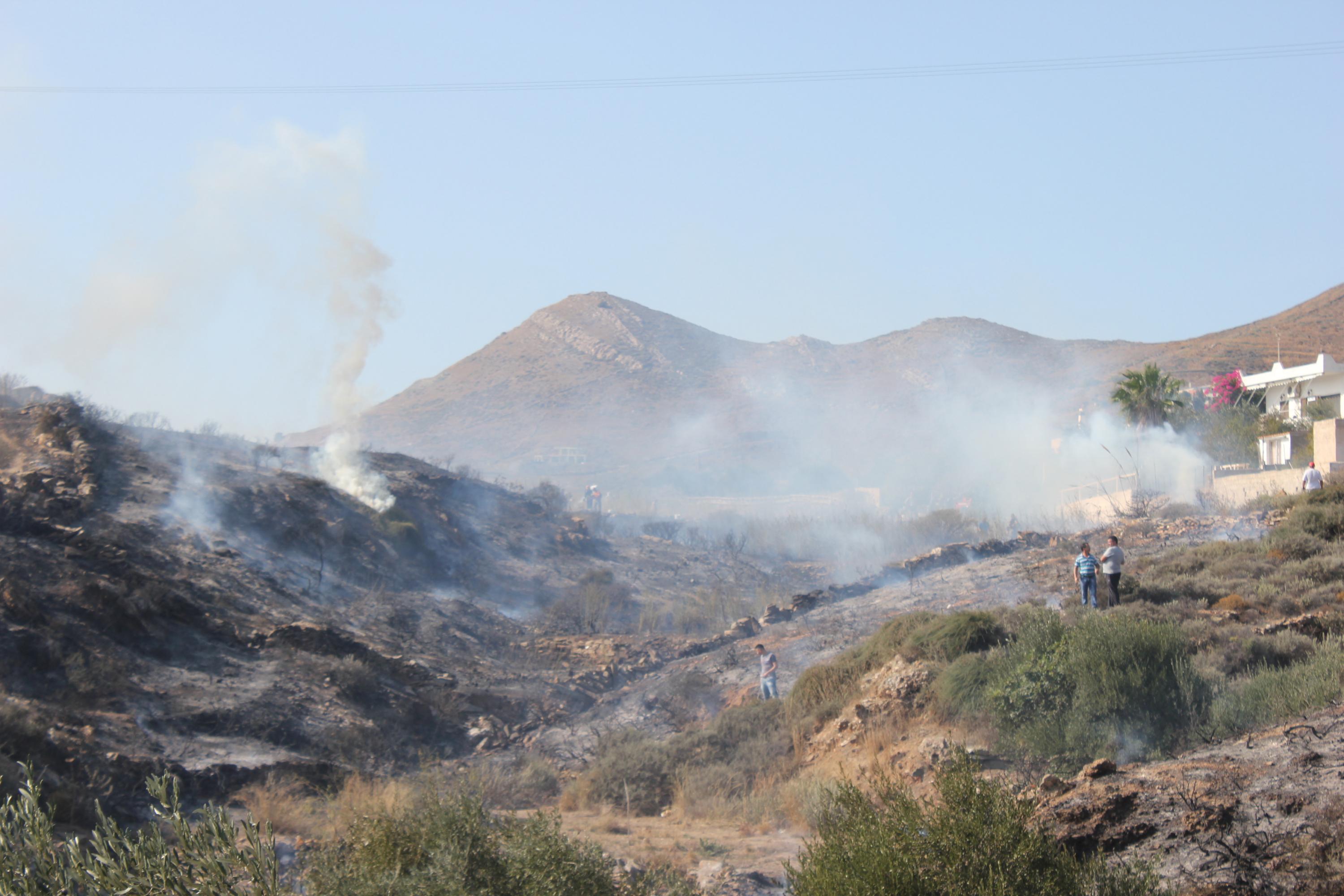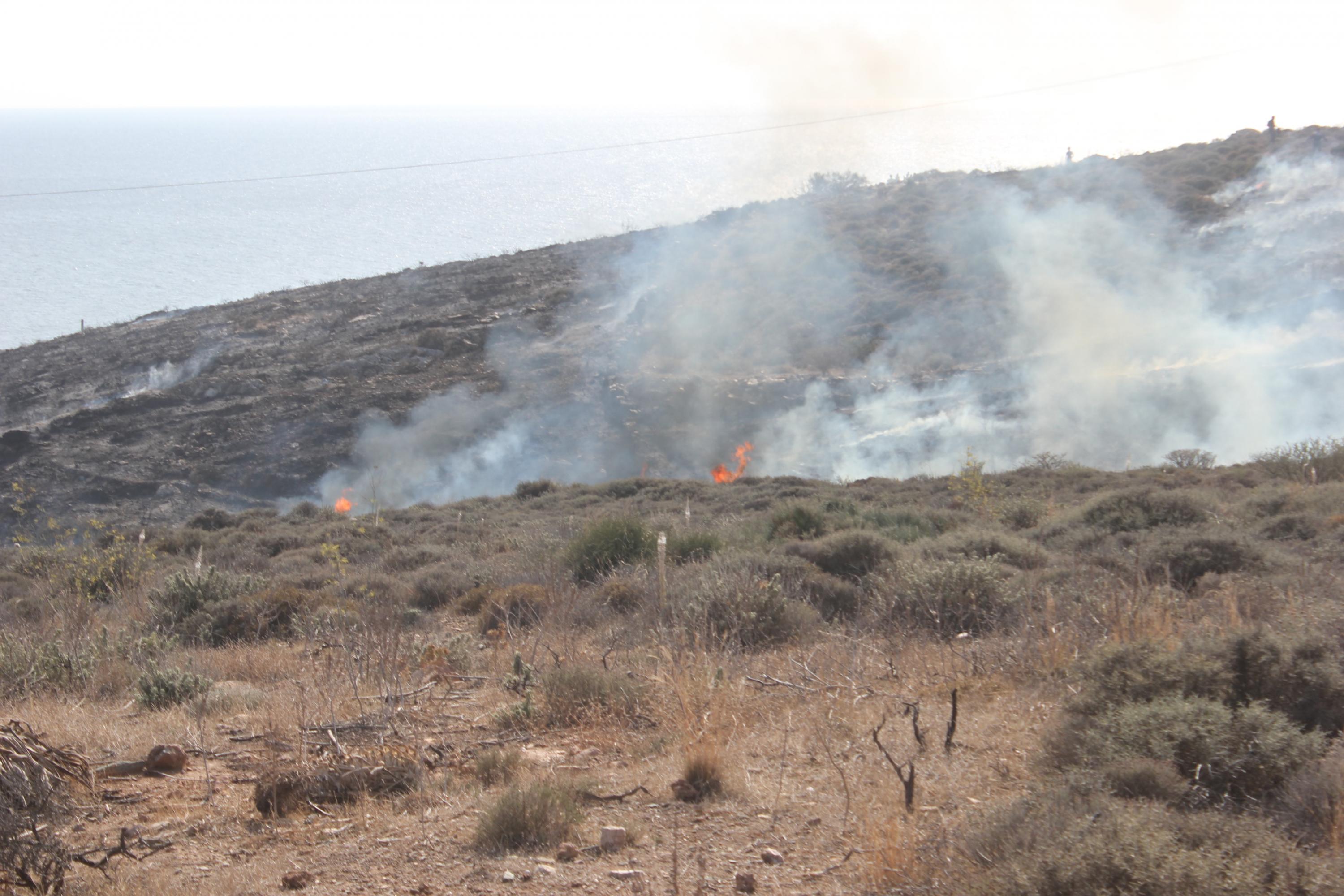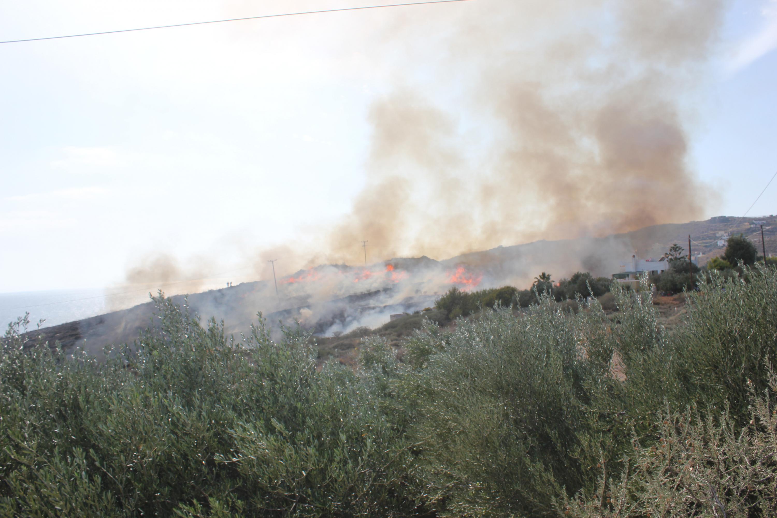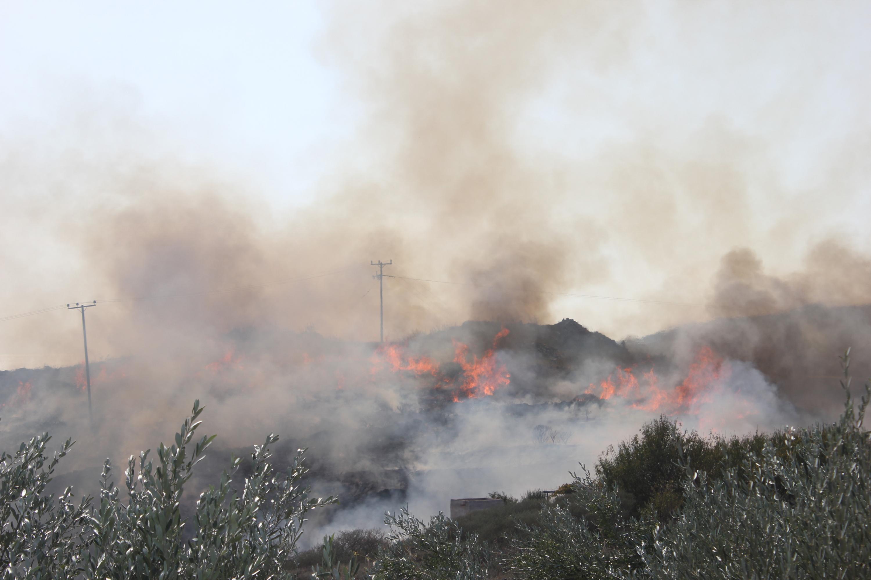 Στις φλόγες παραδόθηκαν αρκετά στρέμματα γης στην περιοχή Νήτες στον Μέγα Γιαλό, εξαιτίας πυρκαγιάς μεγάλης έκτασης, που ξέσπασε σήμερα στις 2 το μεσημέρι, σε απόσταση αναπνοής από κατοικίες και ξενοδοχειακή μονάδα.