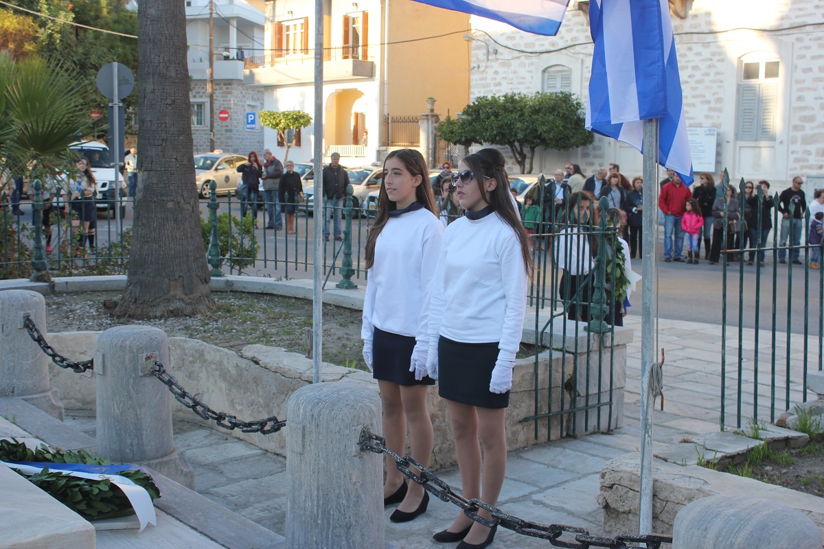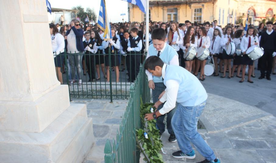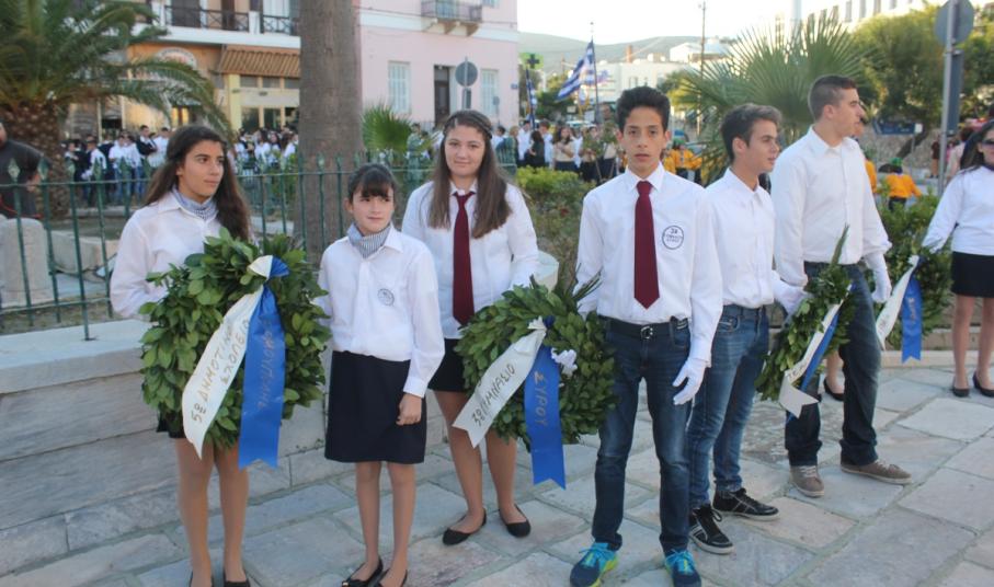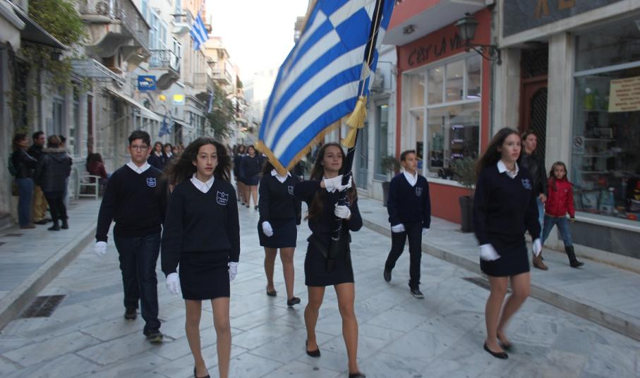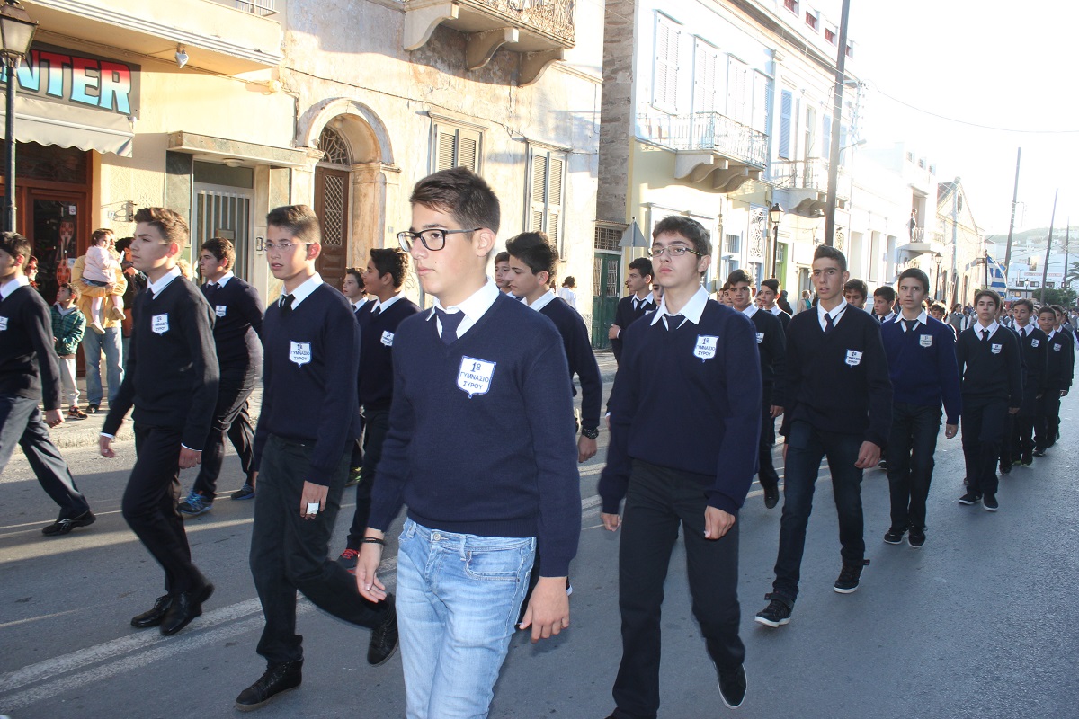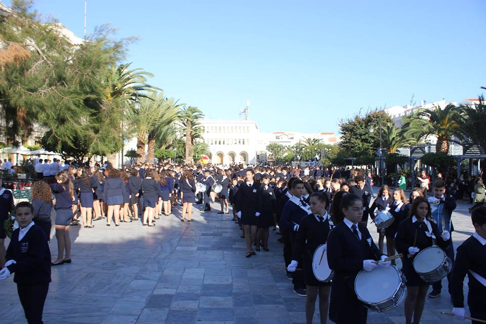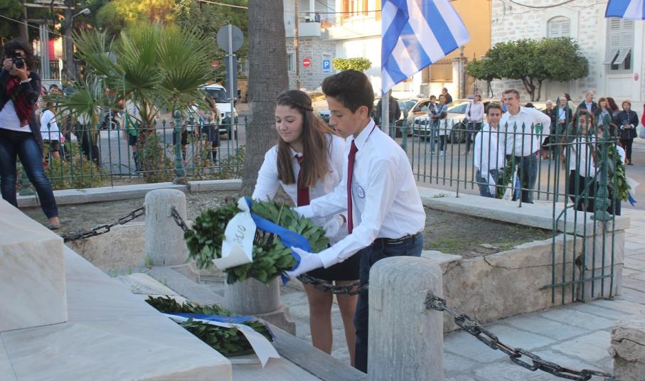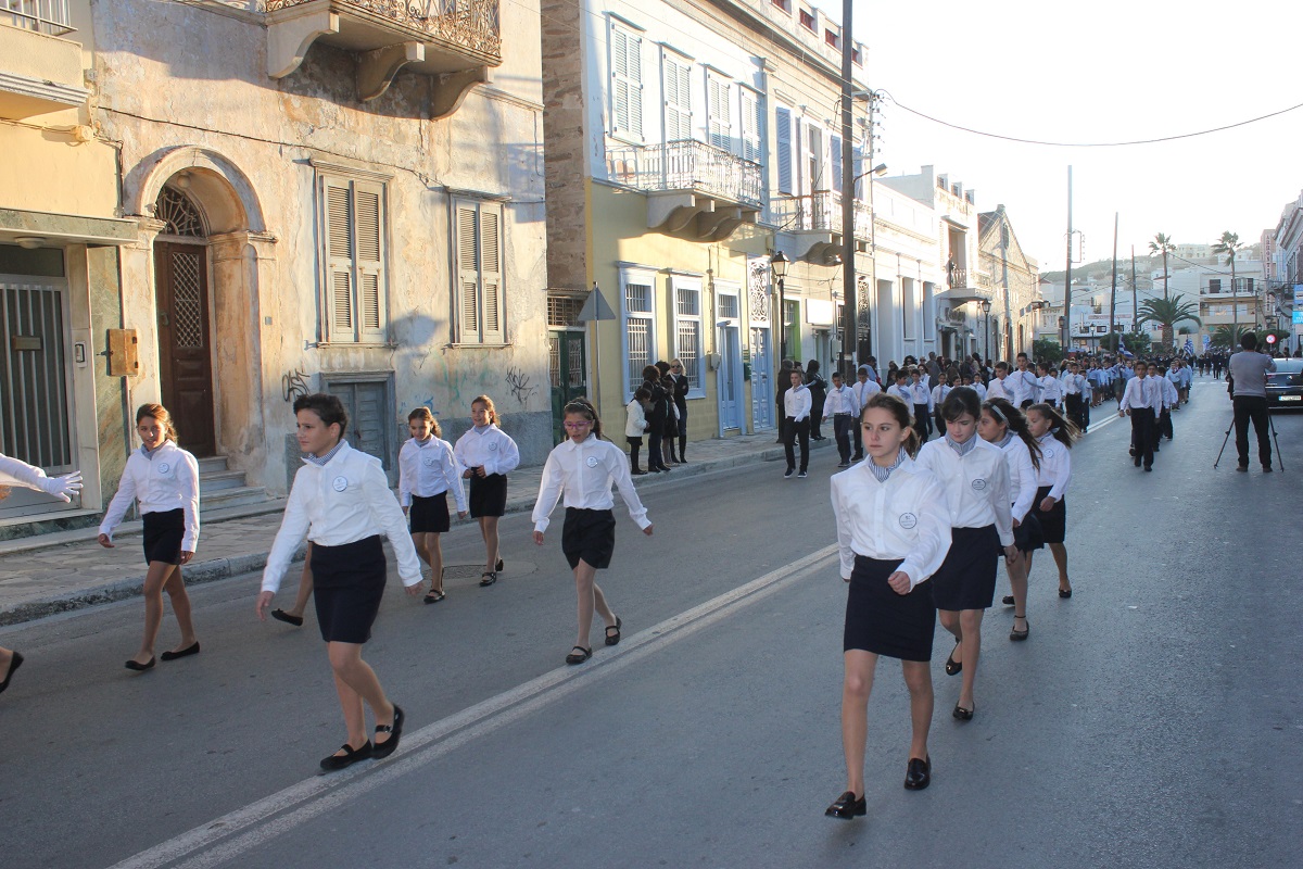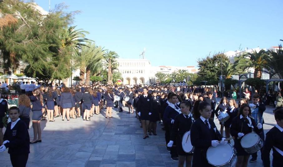Με υψηλό το αίσθημα σεβασμού προς τον ηρωισμό των Ελλήνων που αντιστάθηκαν και αγωνίσθηκαν με περίσσευμα ψυχής πριν από 75 χρόνια, οι μαθητικές κοινότητες αφού συγκεντρώθηκαν στα προκαθορισμένα σημεία συνάντησης, παρέλασαν συντεταγμένες συνοδεία των δασκάλων και των καθηγητών τους προς έξι μνημεία της Ερμούπολης όπου και κατέθεσαν στεφάνια.