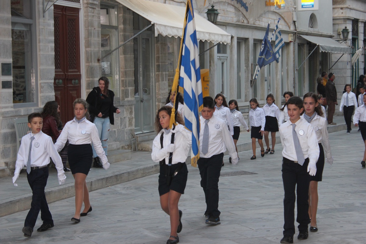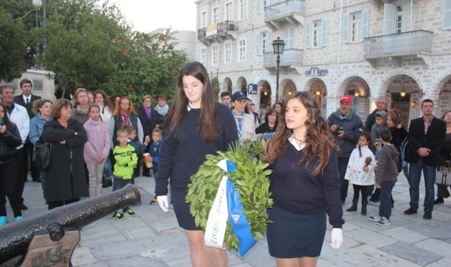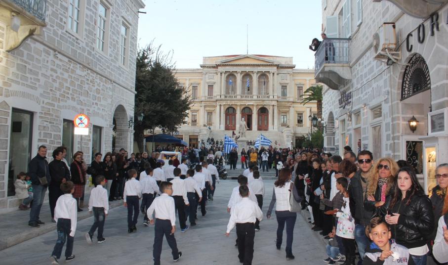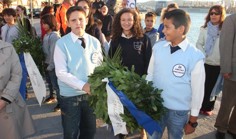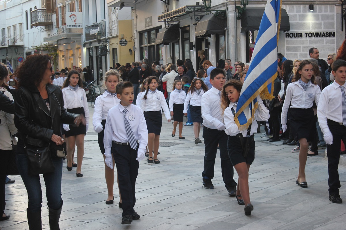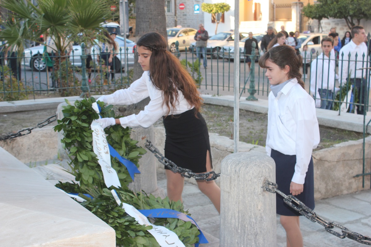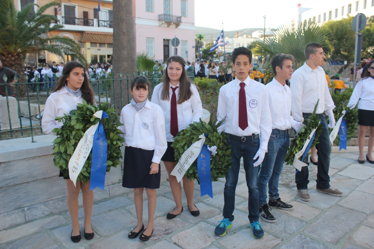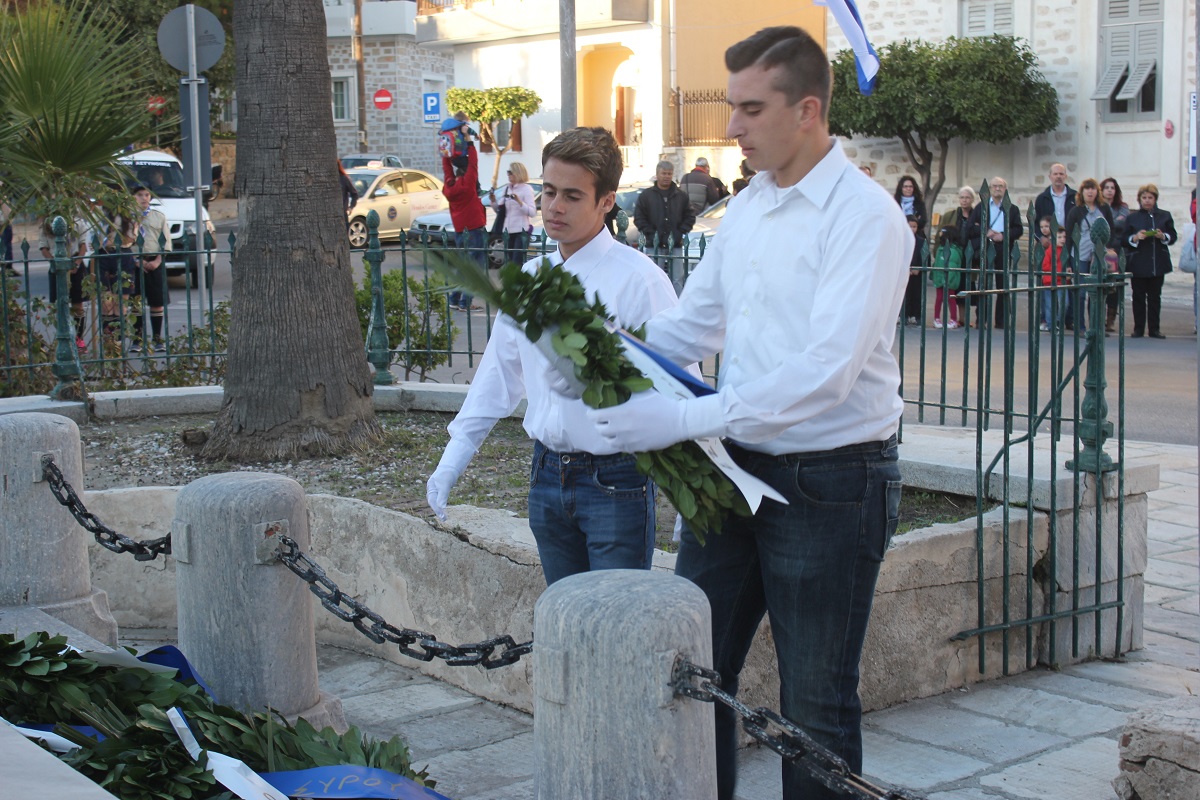 Με υψηλό το αίσθημα σεβασμού προς τον ηρωισμό των Ελλήνων που αντιστάθηκαν και αγωνίσθηκαν με περίσσευμα ψυχής πριν από 75 χρόνια, οι μαθητικές κοινότητες αφού συγκεντρώθηκαν στα προκαθορισμένα σημεία συνάντησης, παρέλασαν συντεταγμένες συνοδεία των δασκάλων και των καθηγητών τους προς έξι μνημεία της Ερμούπολης όπου και κατέθεσαν στεφάνια.