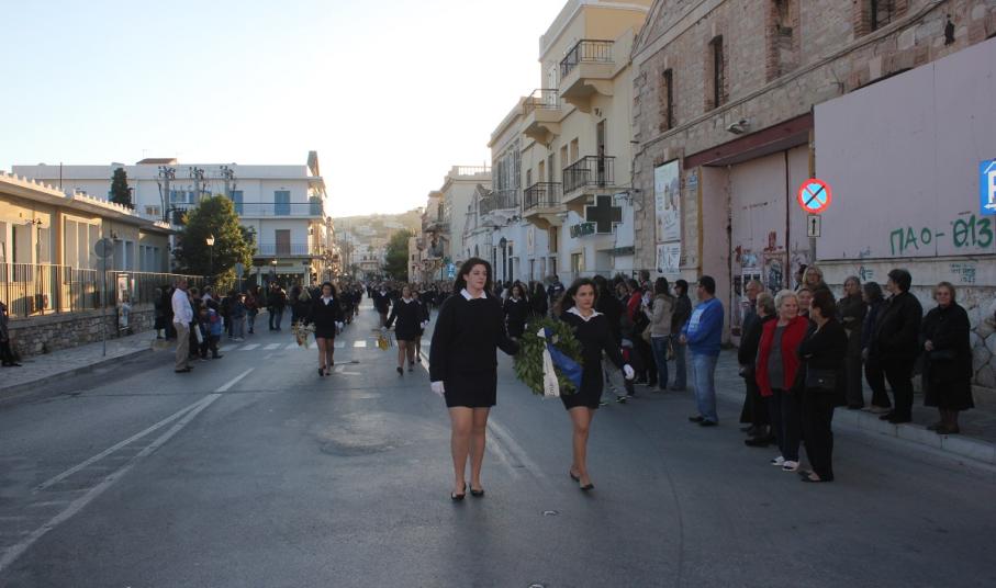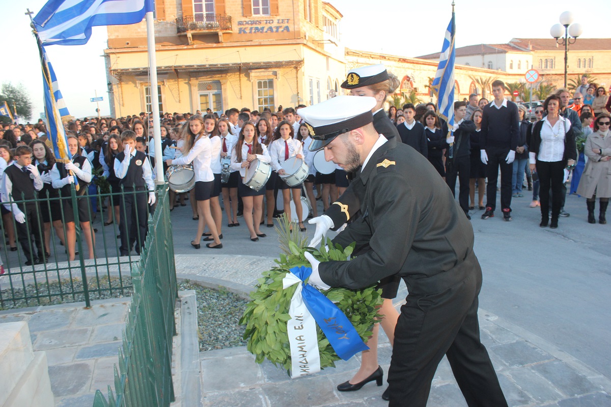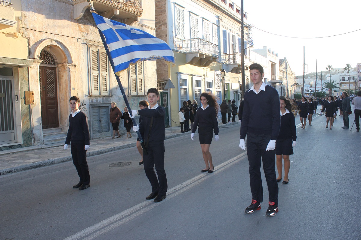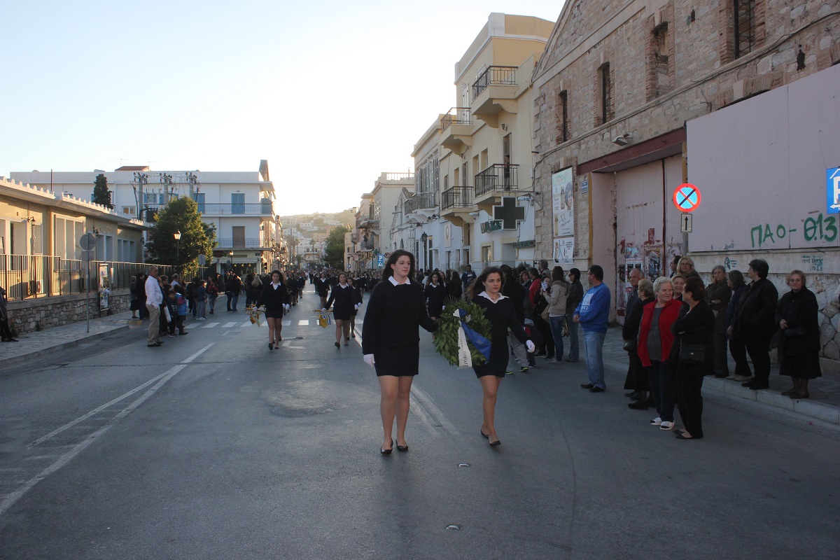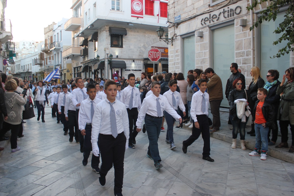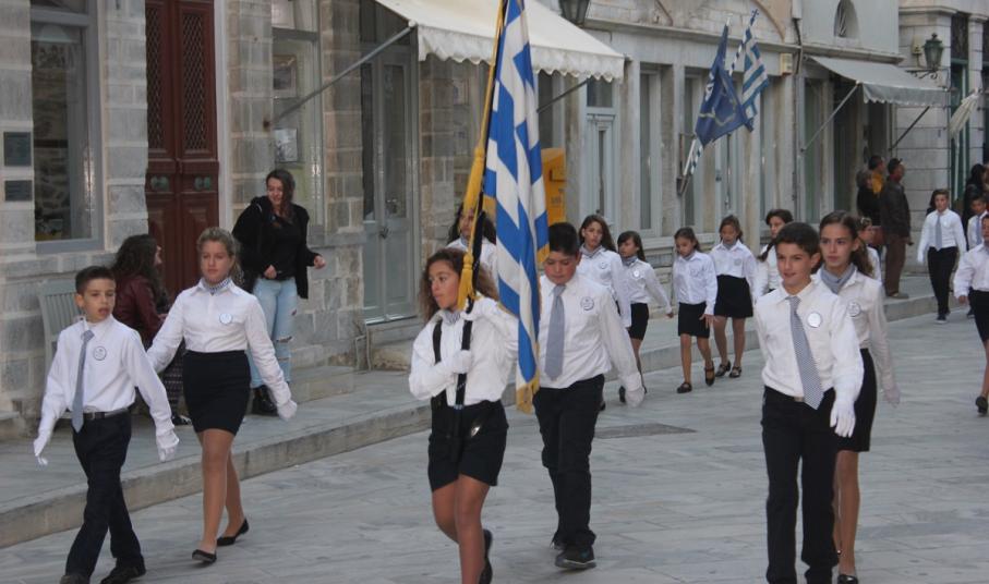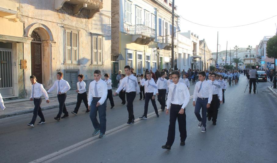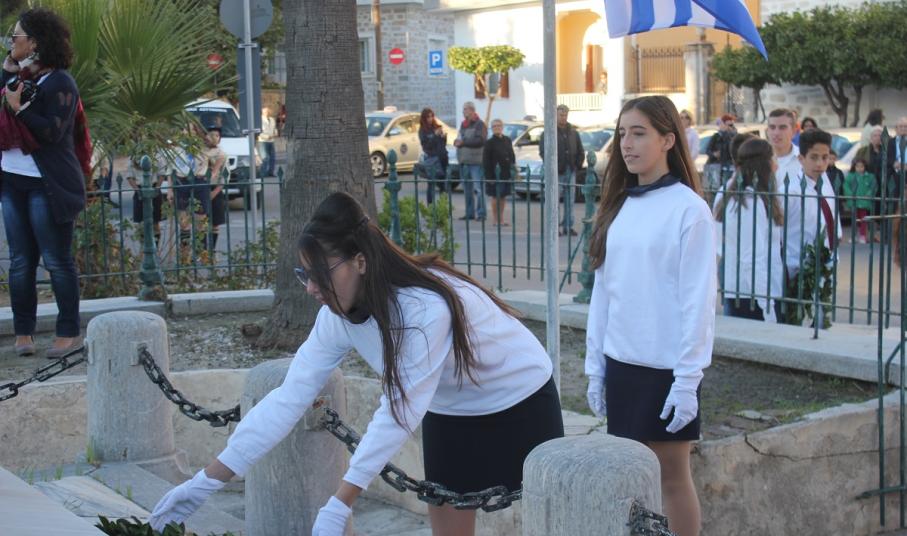 Με υψηλό το αίσθημα σεβασμού προς τον ηρωισμό των Ελλήνων που αντιστάθηκαν και αγωνίσθηκαν με περίσσευμα ψυχής πριν από 75 χρόνια, οι μαθητικές κοινότητες αφού συγκεντρώθηκαν στα προκαθορισμένα σημεία συνάντησης, παρέλασαν συντεταγμένες συνοδεία των δασκάλων και των καθηγητών τους προς έξι μνημεία της Ερμούπολης όπου και κατέθεσαν στεφάνια.