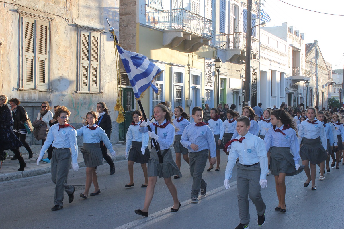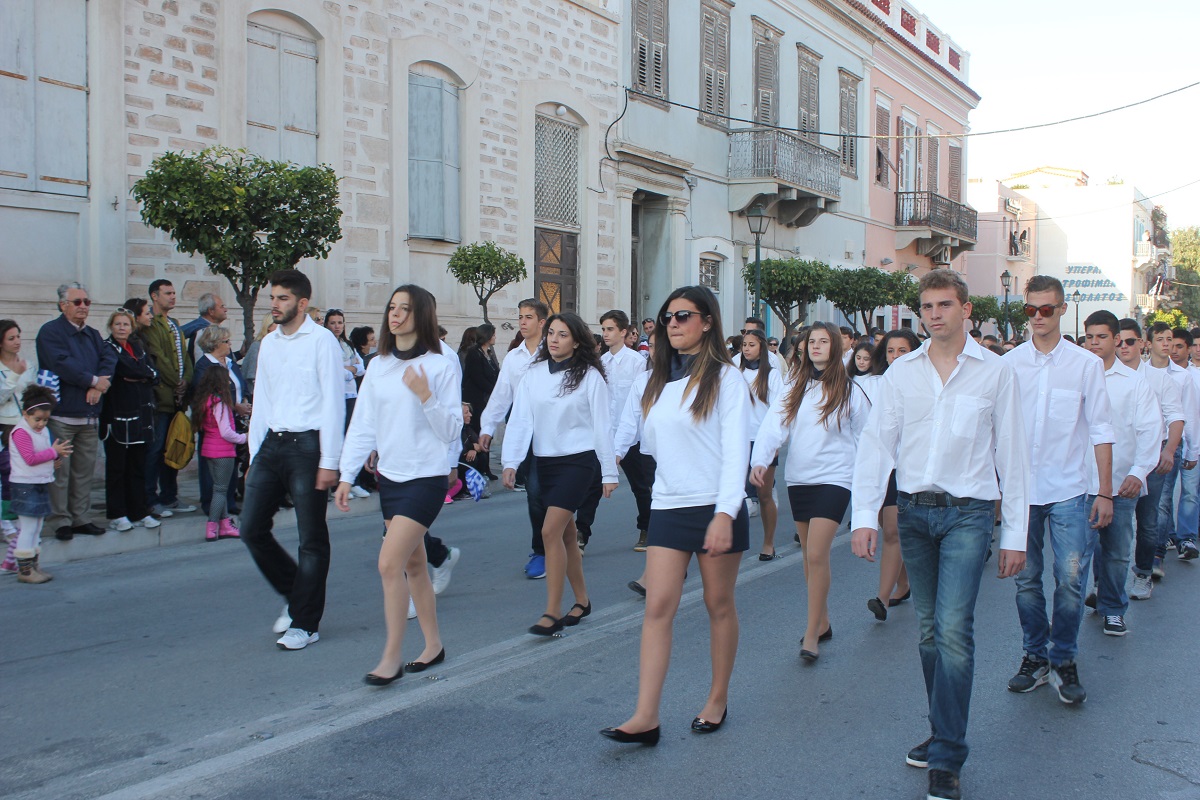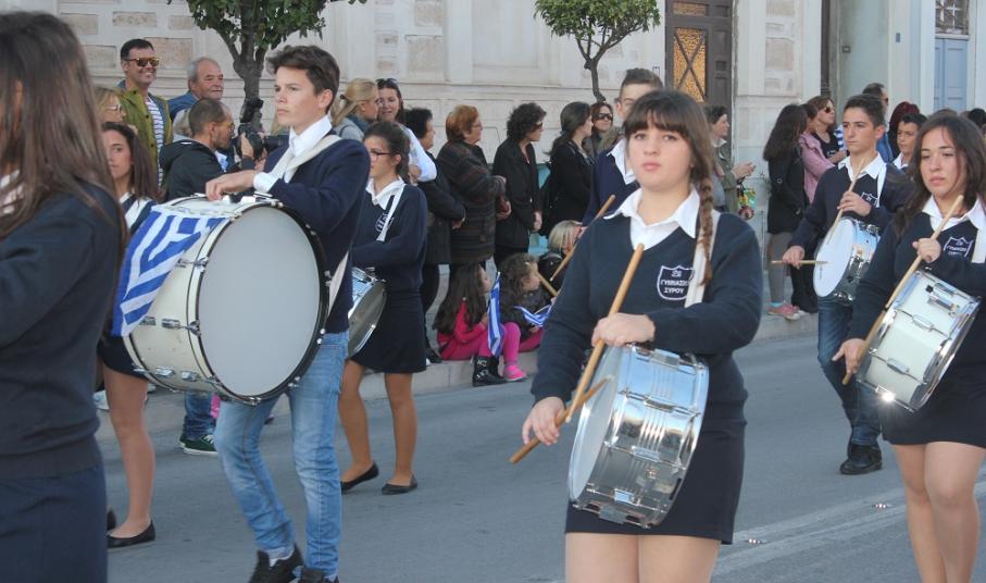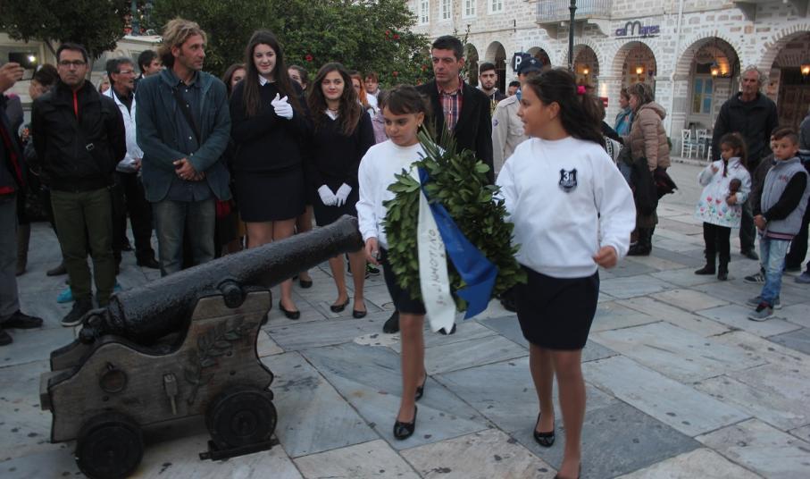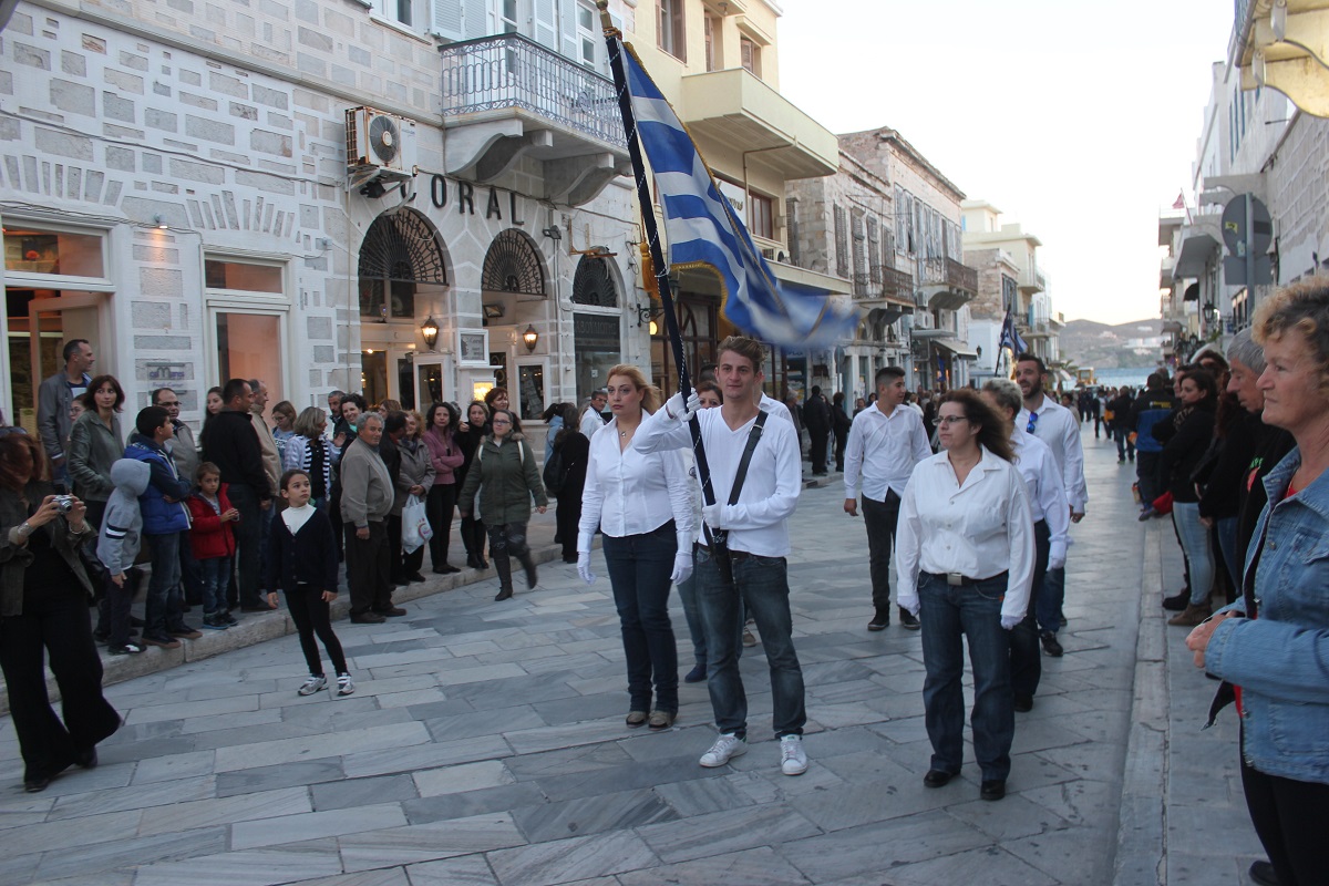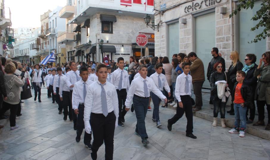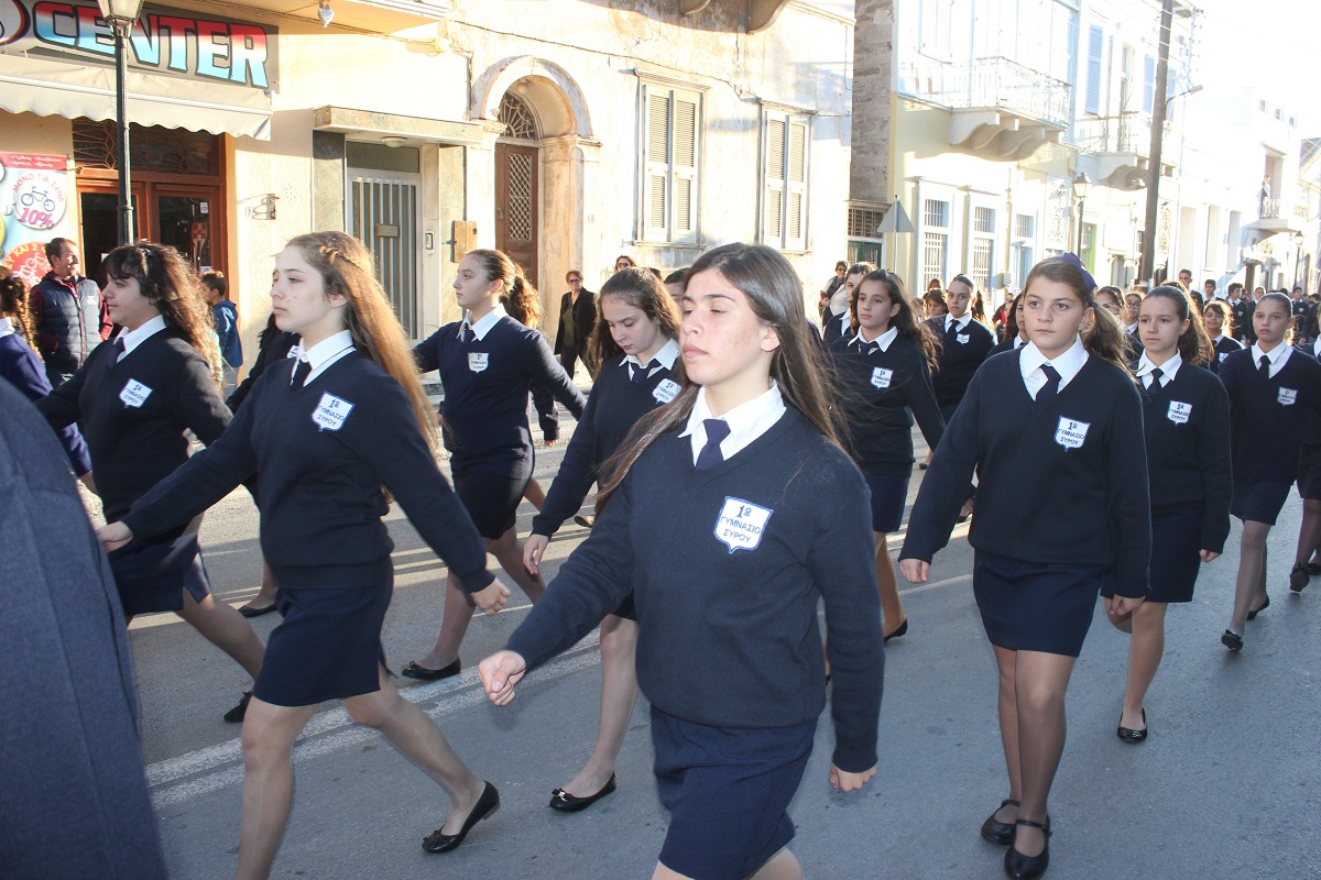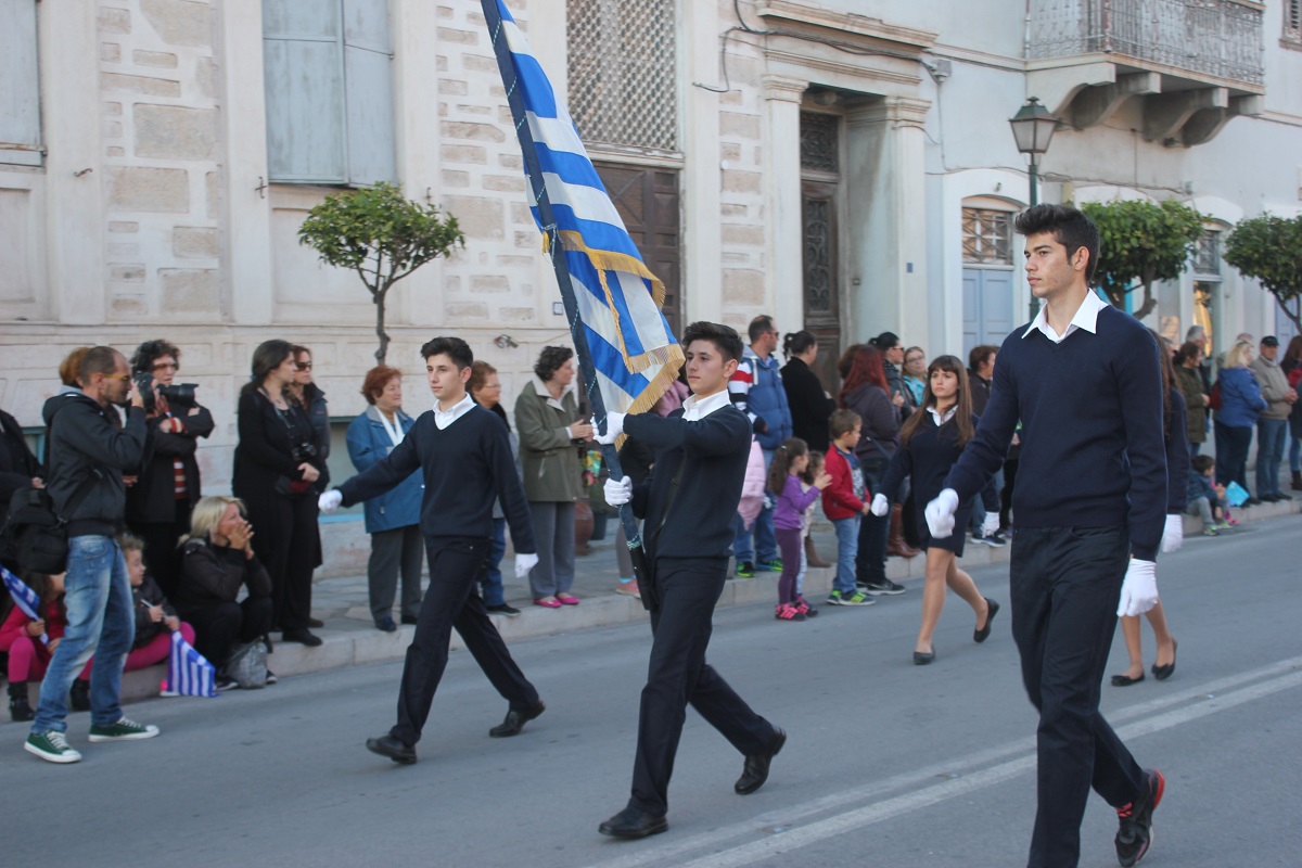 Με υψηλό το αίσθημα σεβασμού προς τον ηρωισμό των Ελλήνων που αντιστάθηκαν και αγωνίσθηκαν με περίσσευμα ψυχής πριν από 75 χρόνια, οι μαθητικές κοινότητες αφού συγκεντρώθηκαν στα προκαθορισμένα σημεία συνάντησης, παρέλασαν συντεταγμένες συνοδεία των δασκάλων και των καθηγητών τους προς έξι μνημεία της Ερμούπολης όπου και κατέθεσαν στεφάνια.