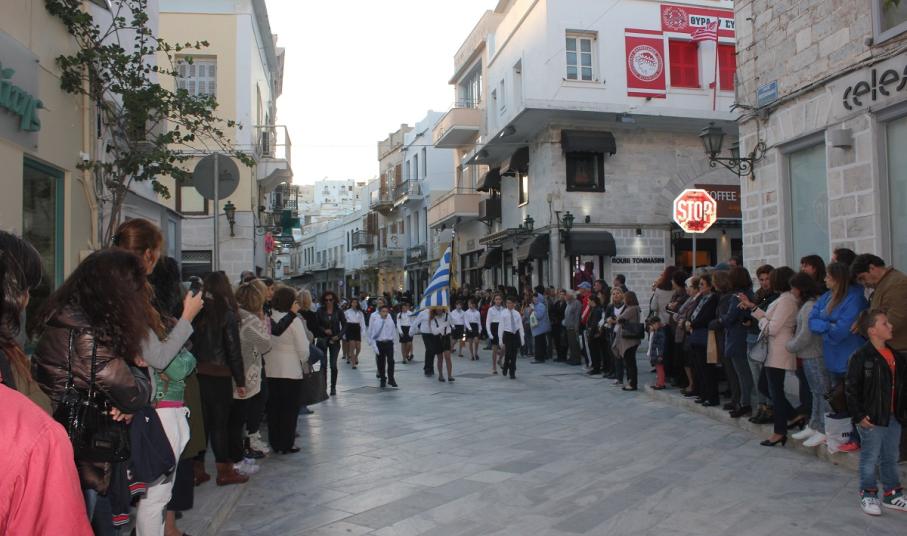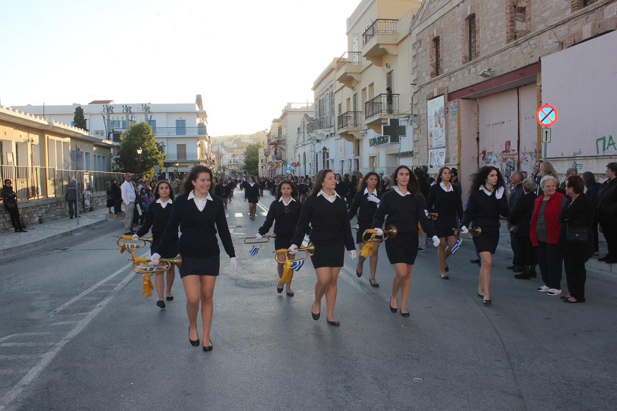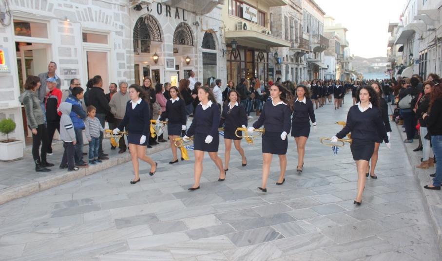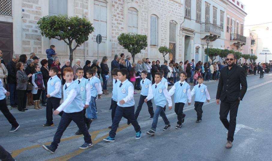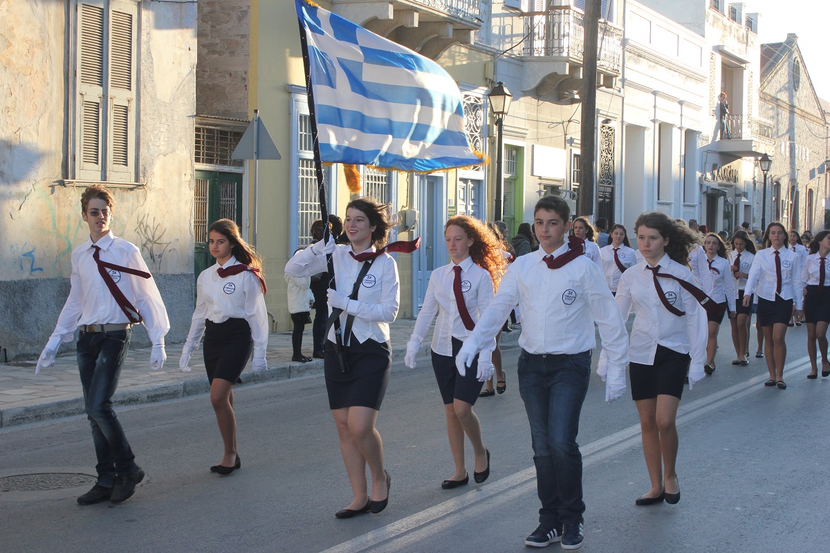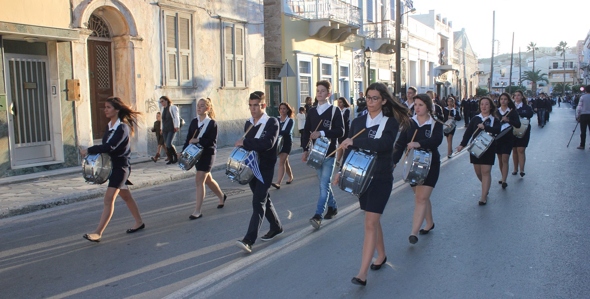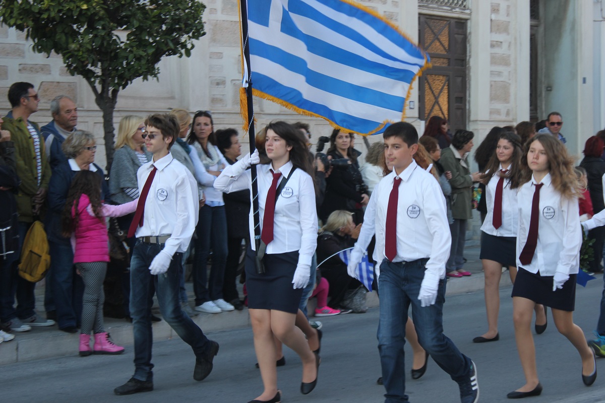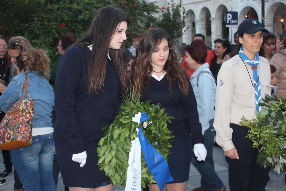 Με υψηλό το αίσθημα σεβασμού προς τον ηρωισμό των Ελλήνων που αντιστάθηκαν και αγωνίσθηκαν με περίσσευμα ψυχής πριν από 75 χρόνια, οι μαθητικές κοινότητες αφού συγκεντρώθηκαν στα προκαθορισμένα σημεία συνάντησης, παρέλασαν συντεταγμένες συνοδεία των δασκάλων και των καθηγητών τους προς έξι μνημεία της Ερμούπολης όπου και κατέθεσαν στεφάνια.