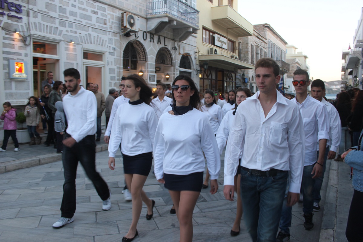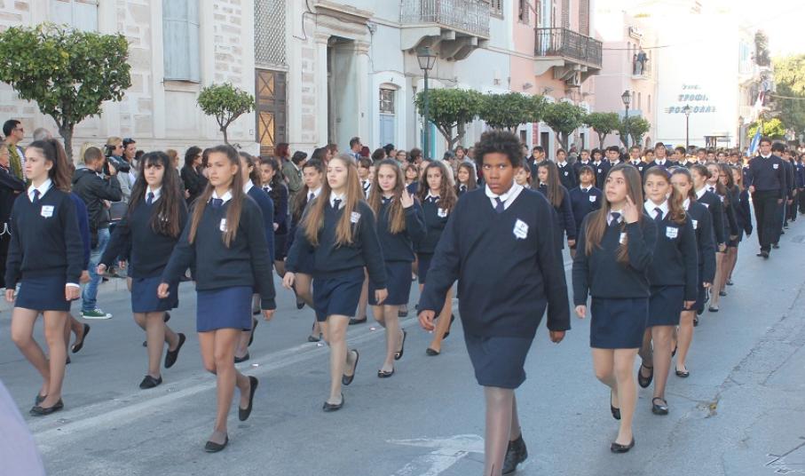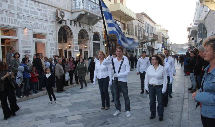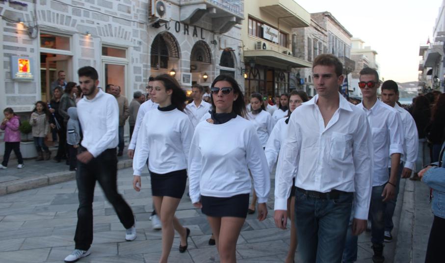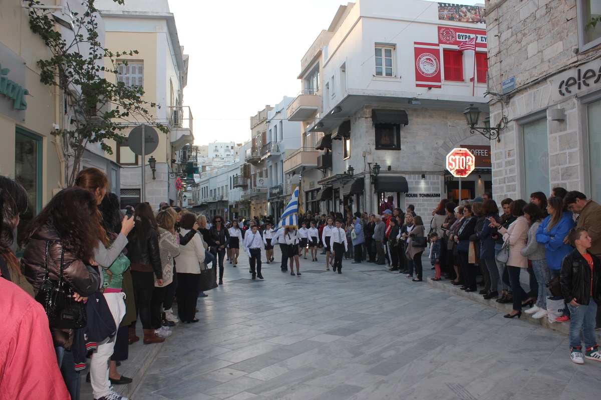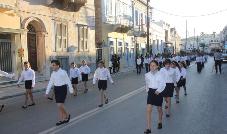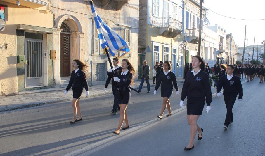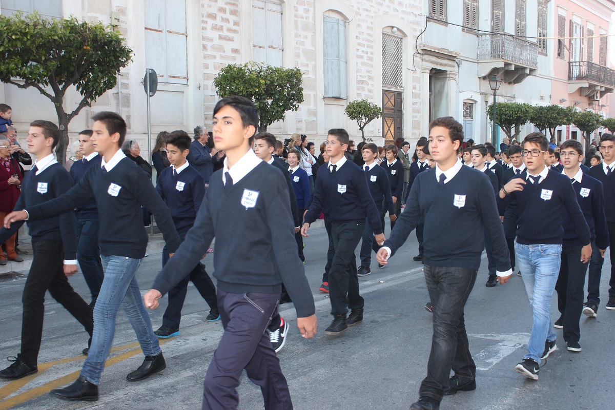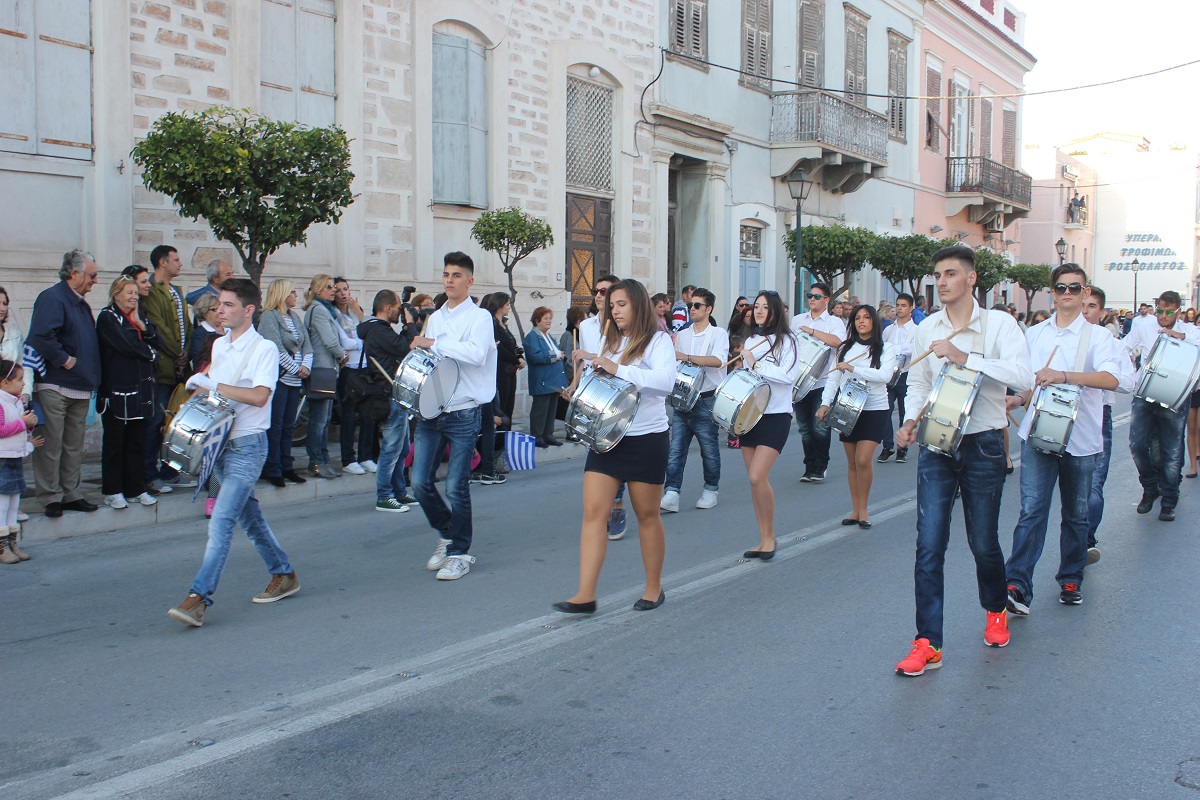 Με υψηλό το αίσθημα σεβασμού προς τον ηρωισμό των Ελλήνων που αντιστάθηκαν και αγωνίσθηκαν με περίσσευμα ψυχής πριν από 75 χρόνια, οι μαθητικές κοινότητες αφού συγκεντρώθηκαν στα προκαθορισμένα σημεία συνάντησης, παρέλασαν συντεταγμένες συνοδεία των δασκάλων και των καθηγητών τους προς έξι μνημεία της Ερμούπολης όπου και κατέθεσαν στεφάνια.