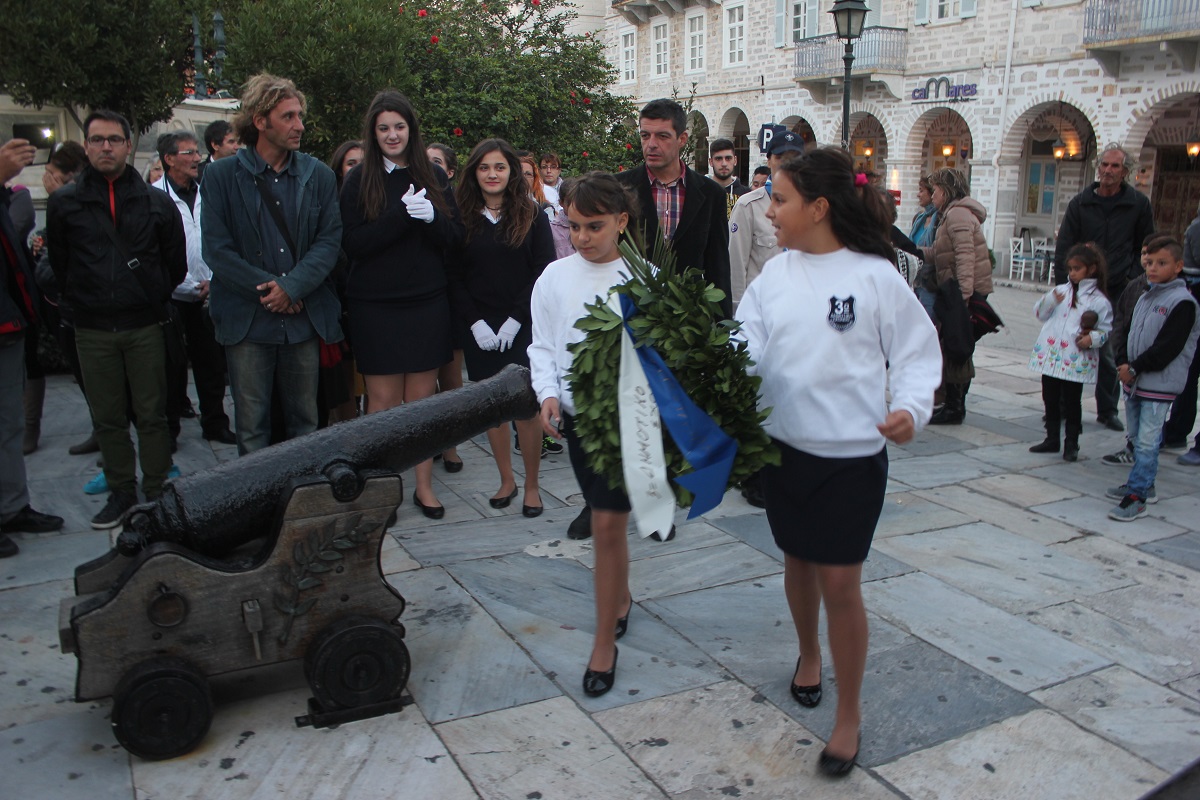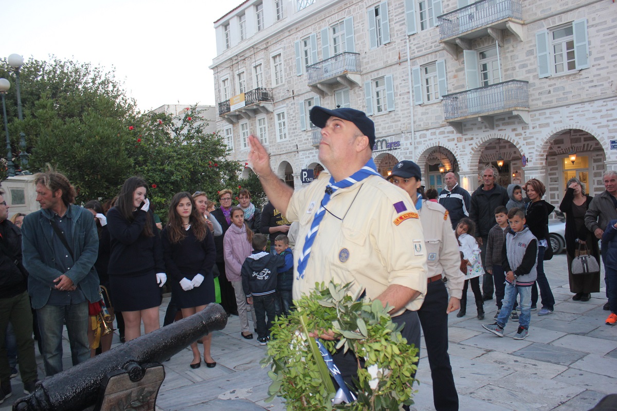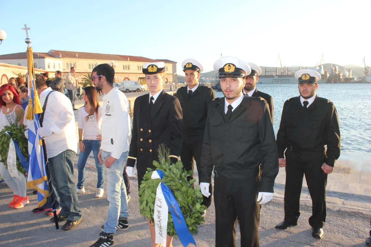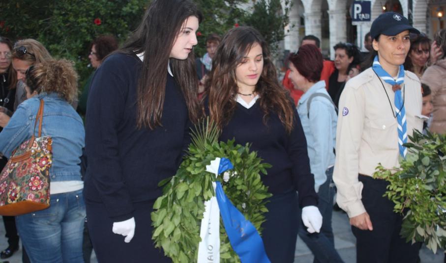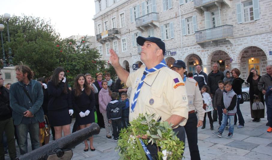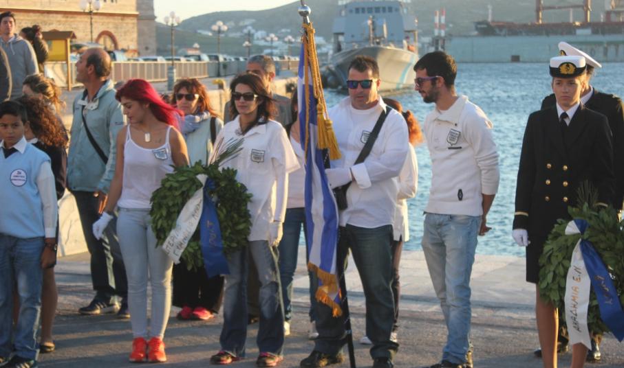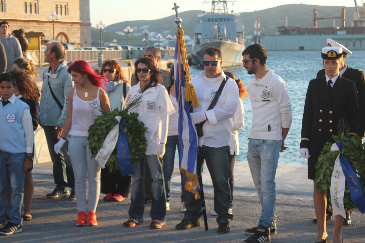 Με επιτυχία πραγματοποιήθηκε, όπως κάθε χρόνο, η καθιερωμένη κατάθεση στεφάνων στα μνημεία της Ερμούπολης από τους μαθητές της πρωτοβάθμιας και δευτεροβάθμιας εκπαίδευσης, τους σπουδαστές της Ακαδημίας Εμπορικού Ναυτικού Σύρου, τα μέλη του Ναυτικού Ομίλου, αλλά και τους προσκόπους του νησιού, στο πλαίσιο των διήμερων εκδηλώσεων για τον εορτασμό της Εθνικού Επετείου της 28ης Οκτωβρίου 1940.