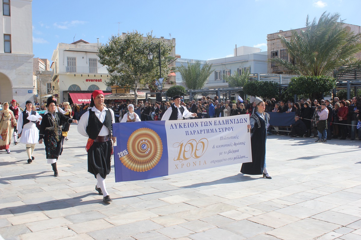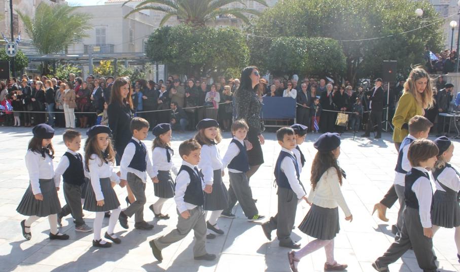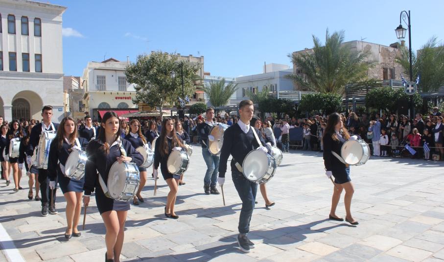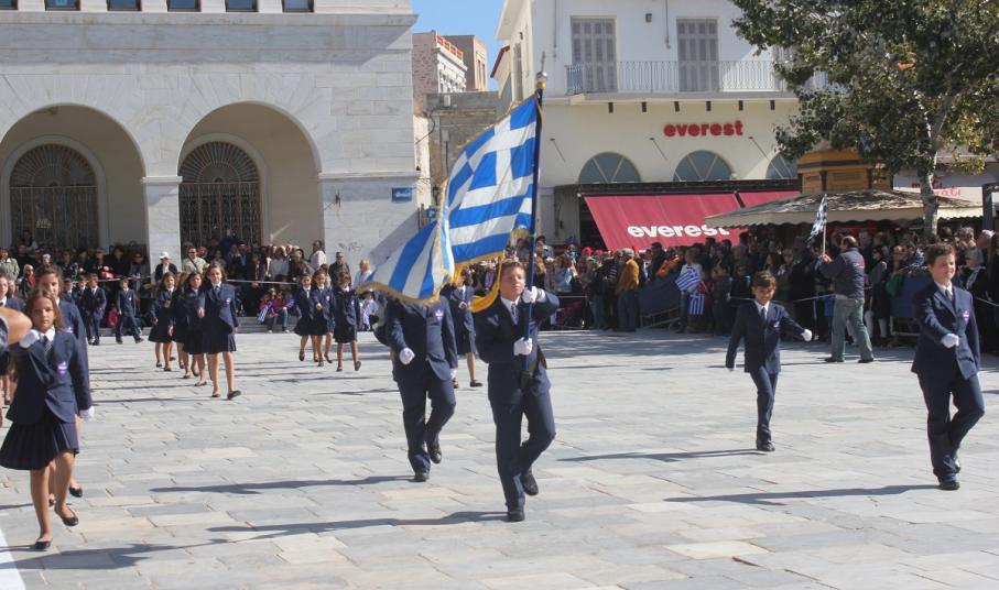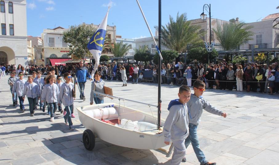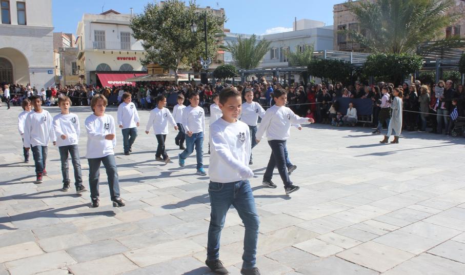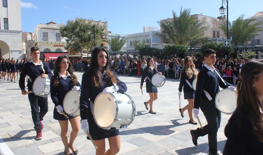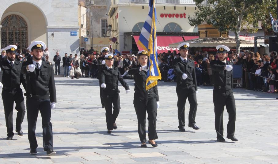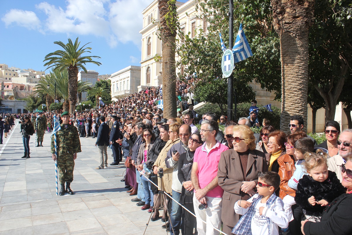 Στη συνέχεια πραγματοποιήθηκε η καθιερωμένη μαθητική παρέλαση στην πλατεία Μιαούλη, στην οποία συμμετείχαν επίσης η Φιλαρμονική του Δήμου Σύρου – Ερμούπολης, το Λύκειο Ελληνίδων Σύρου, ο Πολιτιστικός Σύλλογος Κρητών Σύρου, ο Σύλλογος Ποντίων και Βορειοελλαδιτών Σύρου ο Λαογραφικός Χορευτικός Όμιλος «η σοφία της παράδοσης», σπουδαστές της Ακαδημίας Εμπορικού Ναυτικού Σύρου, ο Ναυτικός Όμιλος Σύρου, ο Αθλητικός Σύλλογος Tae Kwon Do Ερμούπολης και το Σώμα Ελλήνων Προσκόπων.